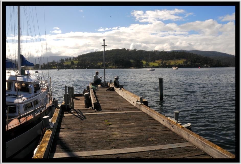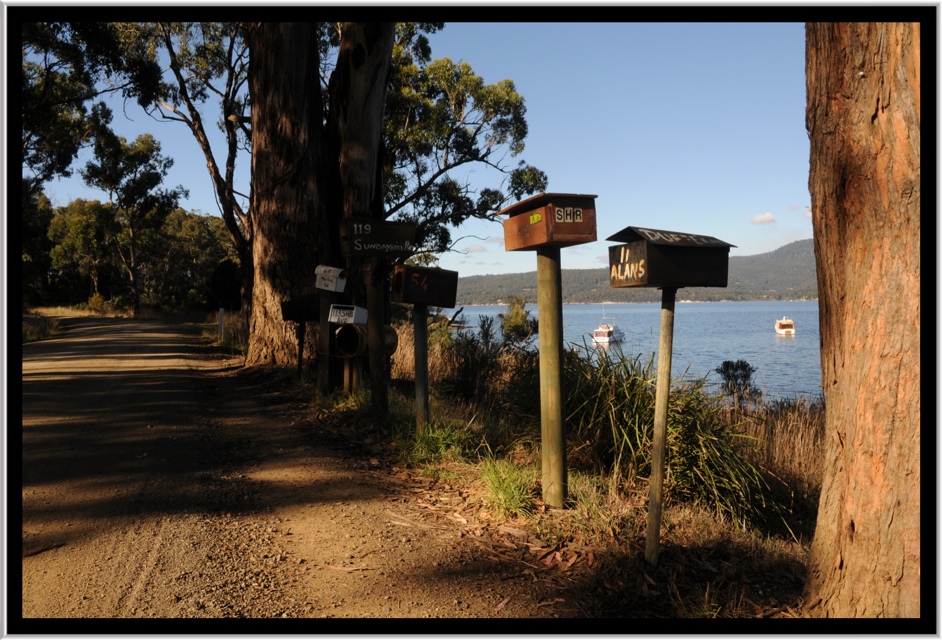 Lascio Hobart in direzione West e percorro la highway (secondo la definizione Tasmana) fino a Huonville, dove devio sulla penisola che costeggia la foce dello Huon River e poi il canale di mare che separa Bruny Island. Abbandono la strada principale per seguire la costiera dove, tra salmon farms, coltivazioni di meli e vite, si aprono degli scorci di fiume spettacolari.