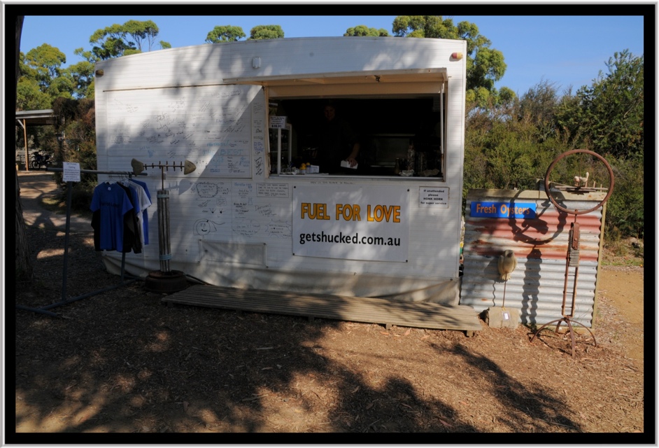 Sulla strada del ritorno, pellegrinaggio mistico alla Getshucked Farm, un baracchino, gestito dal proprietario dell’allevamento Joe Bennet, che per 12$ vi apre (“aprire le ostriche” in Ozzie si dice “to shuck”) una dozzina di fantastiche Tasmanian Oysters (vedi il sito http://www.getshucked.com.au): considerandolo solo un antipasto si può poi gustare salmone e trote affumicati da BISH (Bruny Island Smoking House, http://www.brunyislandsmokehouse.com.au) con i gestori che offrono una squisita ospitalità (oltre ad una pinta di Cascade Draft).