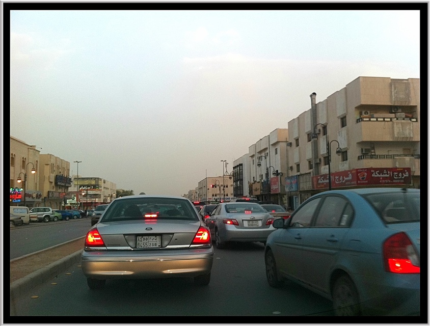 Il percorso di andata e ritorno albergo/ufficio/albergo mi fa riflettere sul concetto di “rush hour” (traffico) che hanno qui a Riyadh: la mattina c’è traffico dalle 6:30 alle 10:00 (per raggiungere l’ufficio), poi dalle 10:00 alle 12:30 per consegne e commissioni, dalle 12:30 alle 15:30 per la pausa del pranzo, dalle 15:30 alle 16:00 per un primo reintro verso casa, dalle 16 alle 19 per il “vero rientro” e, infine, dalle 19 alle 23 per il normale traffico serale. Una pacchia che fa sembrare le tangenziali di milano il venerdì sera sotto la pioggia l’equivalente di un paesino svizzero del Canton Emmenthal.