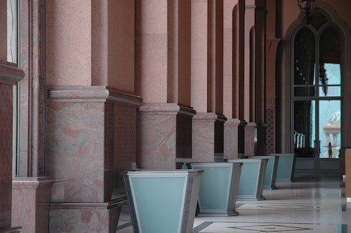Giornata in salita oggi (ma ce ne sono in discesa?), e, per coronare il mio rincoglionimento, stasera sarò in Qatar: vi offro un’immagine di Abu Dhabi, scattata nel 2005. Siamo all’Emirates Palace (appena aperto), e indovinate chi è la ragazzina con gli occhi azzurri di cui si vede il riflesso nell’ultima vetrata …