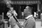 Attraversiamo un mercato nella frenesia della preparazione del cibo per il pranzo domenicale: profumi e sapori tangibili ti guidano in un dedalo di piccole alley dove sopra garriscono panni stesi ad asciugare e fili della corrente elettrica in un incrocio continuo. Spiedini che infilzano qualsiasi cosa si possa essere mossa o meno in vita, wok di noodles, cestini di wanton, frutta intagliata e altre cose che non riesco a definire ti si offrono in un continuum alimentare.