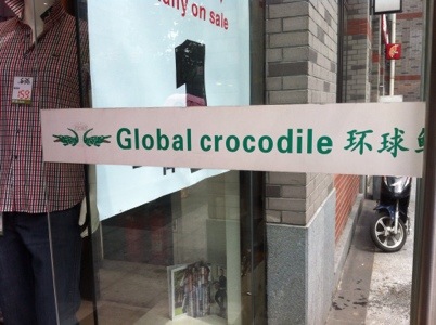 Foto di oggi? La lotta alla contraffazione dei brand è ancora ben lontana da qualsiasi speranza di vittoria in China: esistono però esempi quasi divertenti … Come questo della Lacoste trasformato in Global Crocodile …