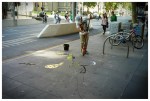 Un po’ di scatti di oggi: mi prego di notare che il tipo con un moccio in mano non sta lavando il marciapiede come fosse il ponte di una nave, ma dipingendo con le goccie d’acqua. Arte evaporativa? Orinata creativa? Goccia cubista?