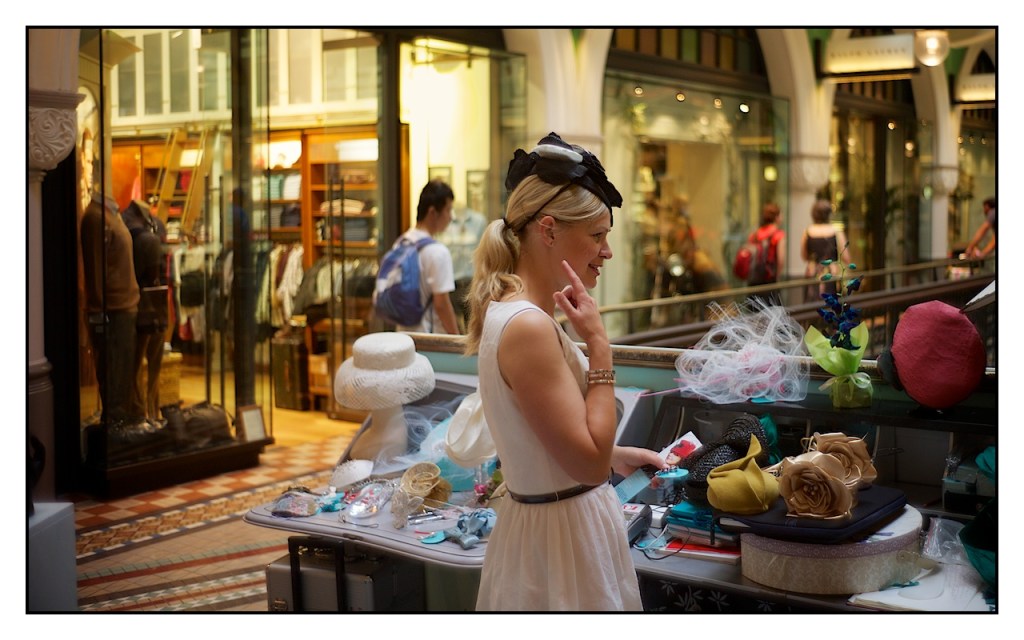 Catherine produce i suoi deliziosi cappellini e li vende dentro QVB in Sabato