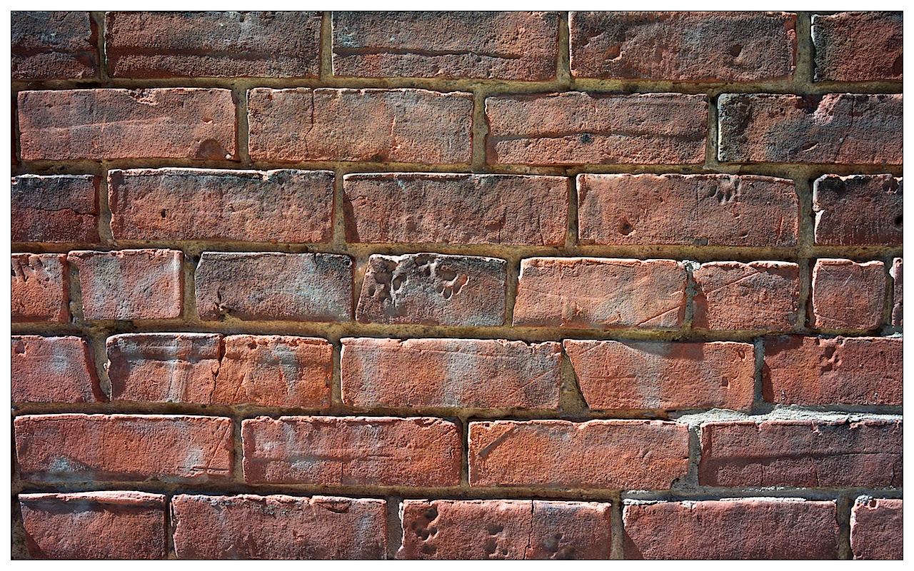 Foto di oggi? La scorsa estate stavo pedalando per il centro di Montreal (ero letteralmente in giro in bicicletta) e ho trovato alcuni muri eretti con i vecchi mattoni che venivano fabbricati in una fornace ormai chiusa da anni. Gli operai mettevano ad essiccare i mattoni all’esterno ed era tipico vedere dei gatti passeggiarci sopra, lasciando le loro impronte, che poi venivano “cotte” e consegnate ai posteri: al centro se ne vede una ….
