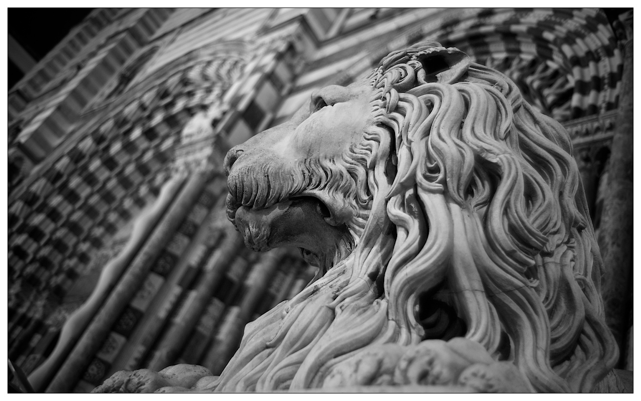L’alternanza di pietra bianca e nera conferma la tradizione di nobiltà nel medioevo-gotico genovese. I due leoni alle estremità (uno fotografato ieri sera, sotto) sono invece aggiunte dell’800.