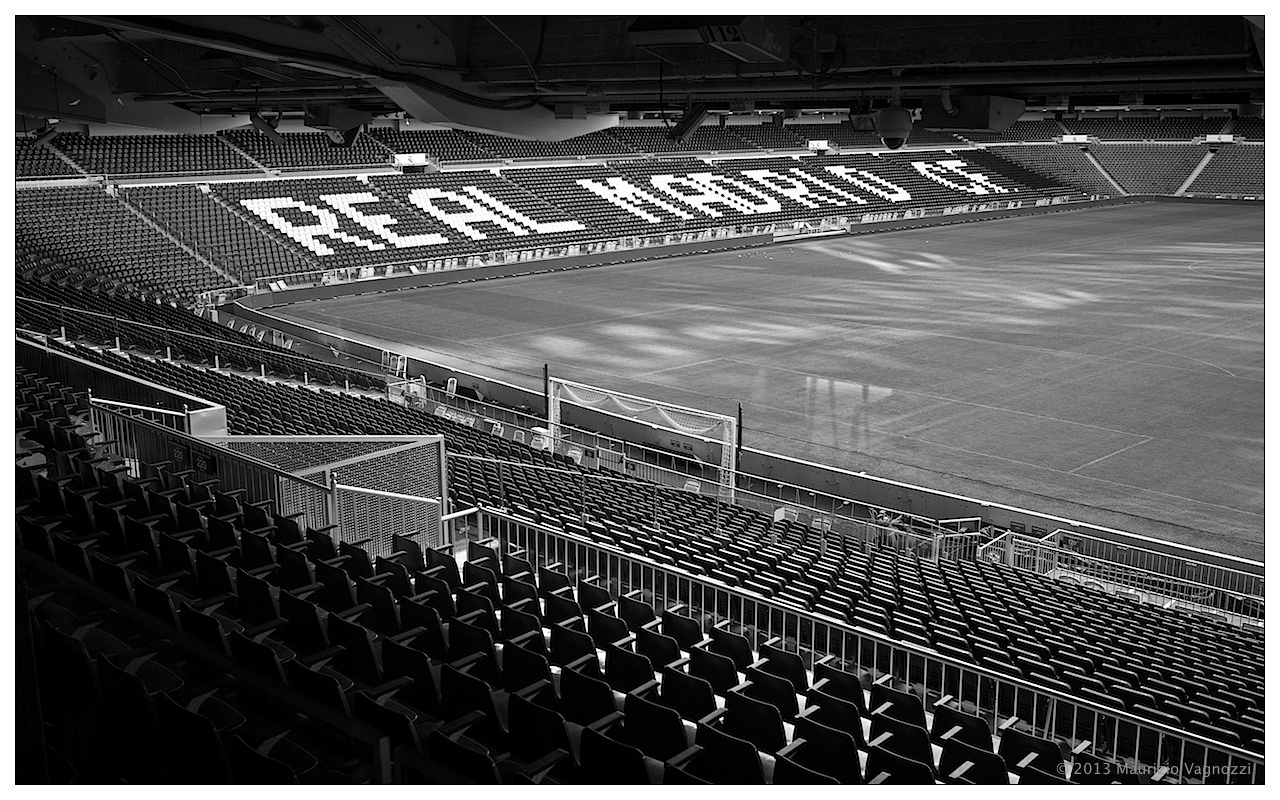 Non sono certo un appassionato, ma entrare nella cattedrale del calco, nello Estadio Santiago Bernabéu, è sicuramente un’emozione. Inaugurato nel 1947, di proprietà del Real Madrid Club de Futbol, dopo le ultime ristrutturazioni e adeguamenti di sicurezza, ospita quasi 85mila indemoniati che urlano mentre 22 tipi in pantaloncini corti corrono dietro ad una sfera tentando reciprocamente di posizionarla nella rete opposta.