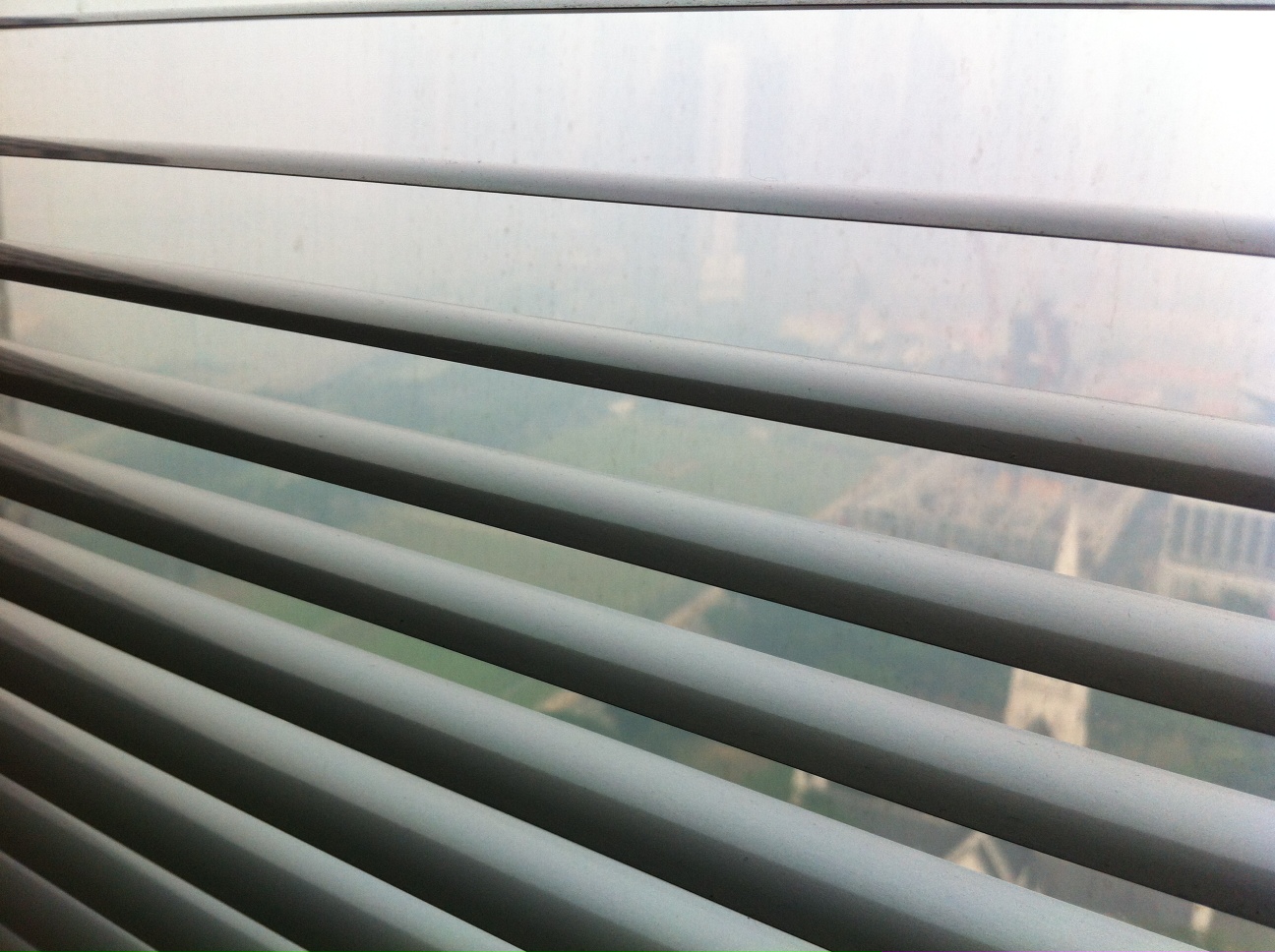 Scatti di oggi: il fumoso panorama fuori della finestra del mio ufficio nella Raffles Tower, e i due proprietari della Bruny Island Smoke House …