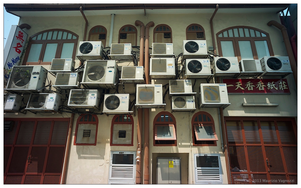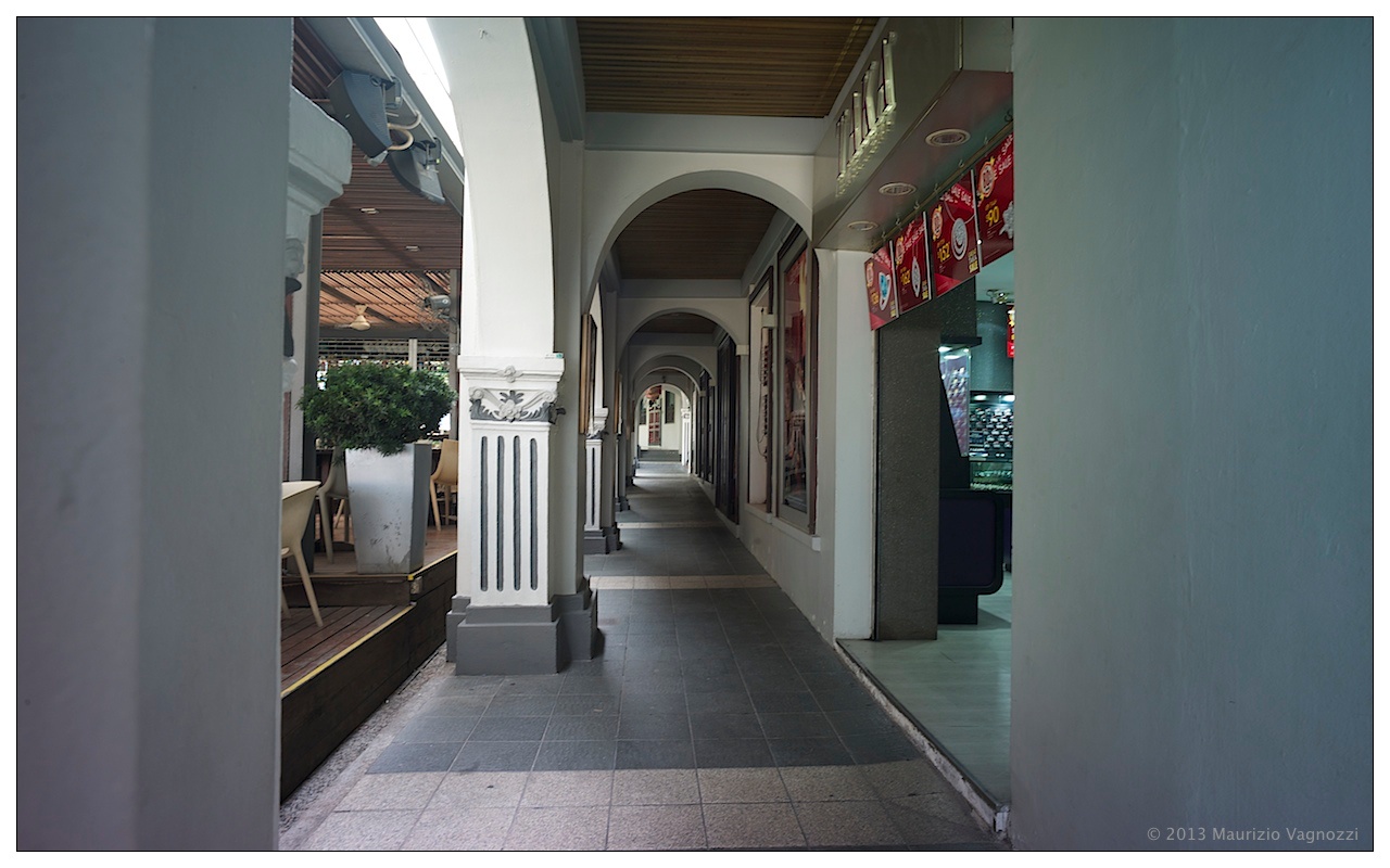 Immagini di oggi: finalmente il fumo che ha attanagliato Singapore per tutta la settimana è stato spazzato via dal vento da nord, e ci si è ritrovati con una bella luce e il cielo azzurro. 12 x 21 quindi: 12 immagini scattate andando a cercare i posti meno consueti, utilizzando un obiettivo 21mm.