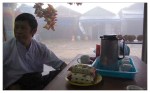Sveglio dalle 5, e accompagnato prima dalle voci ritmate della preghiera al Buddha, poi da un’interminabile fila silenziosa di monaci. Sotto una pioggia impossibile, e avvolti nelle loro tuniche porpora con la giara in mano, chinano il capo quando ricevono un cucchiaio di riso dalla gente. Alcuni sono bambini. Tutti con una dignità e una serenità impressionante. Il silenzio viene solo rotto dal suono di una piastra d’ottone che segnala il loro apparire e il loro sparire ancora nella nebbia della strada.