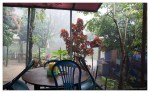 Ho le dita delle mani con tutte le pieghe come quando, da bambini, rimanevamo troppo nella vasca da bagno. Piove ovunque e ho messo la macchina fotografica dentro 2 sacchetti di plastica: scattare qualcosa è complesso, ho però la “piccola” D-Lux e mescolo quello che vedo con il mio “ristorante” di ieri sera, dove ho cenato con Tremal-Naik …