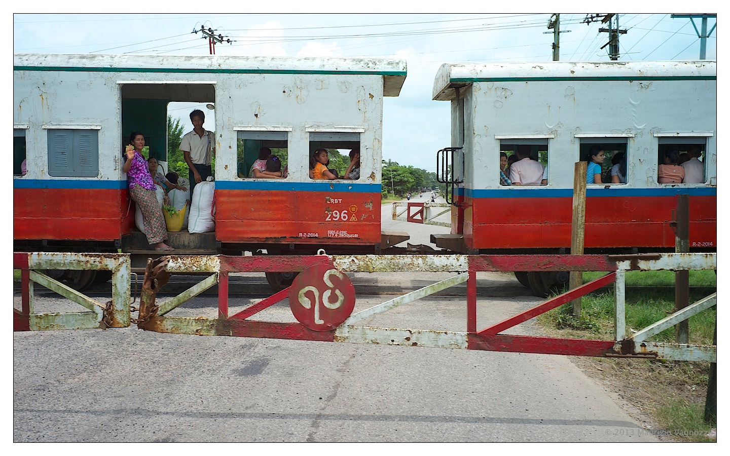 Sveglio dalle 5, e accompagnato prima dalle voci ritmate della preghiera al Buddha, poi da un’interminabile fila silenziosa di monaci. Sotto una pioggia impossibile, e avvolti nelle loro tuniche porpora con la giara in mano, chinano il capo quando ricevono un cucchiaio di riso dalla gente. Alcuni sono bambini. Tutti con una dignità e una serenità impressionante. Il silenzio viene solo rotto dal suono di una piastra d’ottone che segnala il loro apparire e il loro sparire ancora nella nebbia della strada.