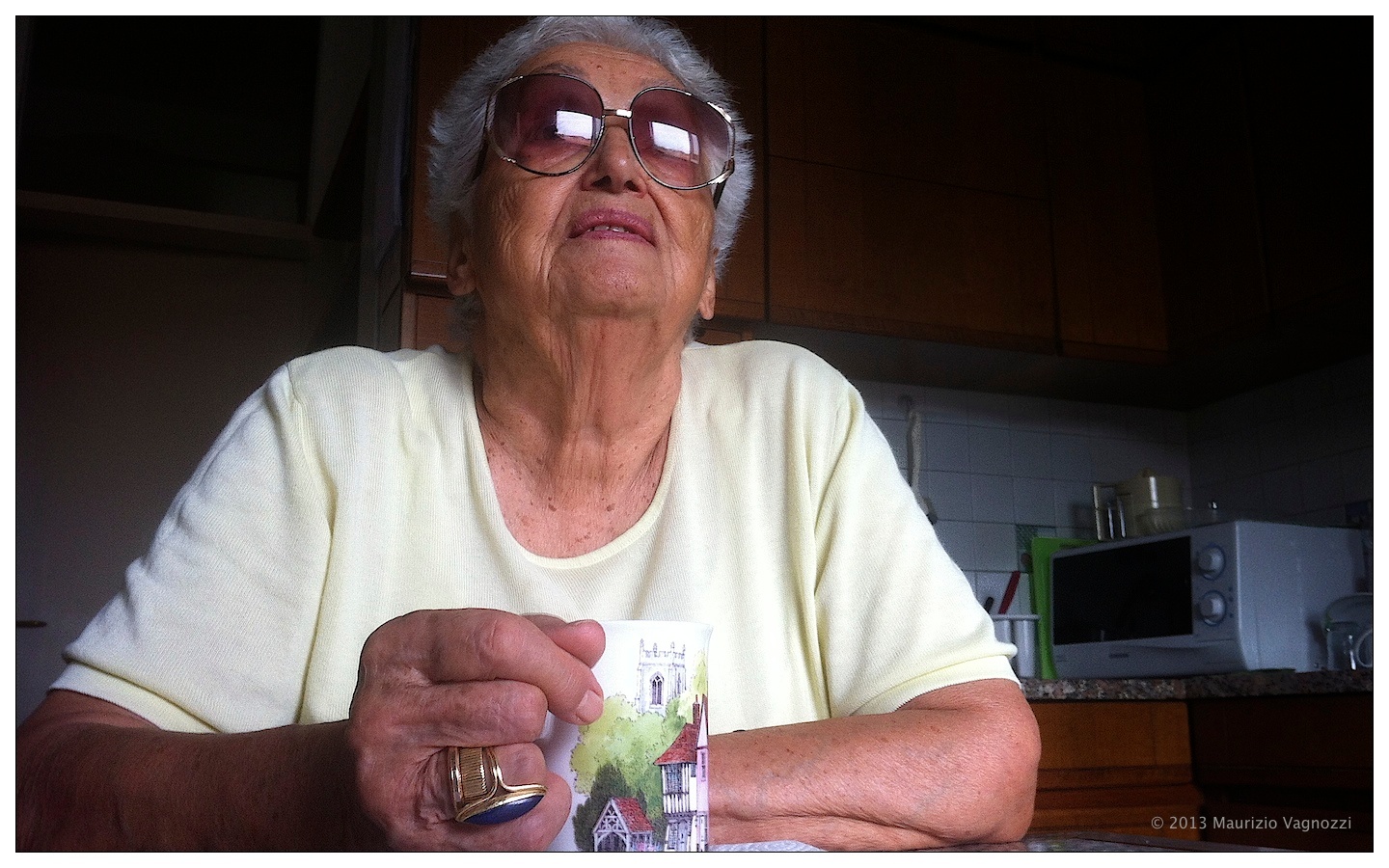Mau “Ti volevo fare anche una foto, qui in cucina, che c’è sempre una bella luce”. White Mam(b)a “No, che mi da fastidio il flassss (flash, ndr)”. “Mamma, io NON uso MAI il flash”. “Si, si, poi non ci vedo più e mi fanno male gli occhi“. “Mamma, cazzo, questa macchina fotografica NON ha il flash.”. “Si, le hanno tutte il flassss. Sarà, ma io non voglio il flassss e tengo gli occhi chiusi allora“.