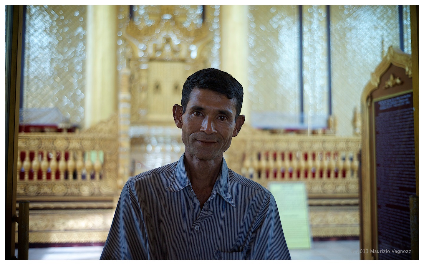 Ho notato una totale assenza di qualsiasi altro visitatore nella zona: la mia guida, Tremal-Naik, quando ho chiesto la ragione dell’essere assolutamente l’unico non-locale, mi ha risposto “Non abbiamo ancora molto turismo in Myanmar, e poi chi vuoi che sia così coglione di venire qui durante la stagione delle piogge“. Ho quindi passato una buona mezzora chiacchierando con l’unico custode, attraverso la traduzione di Tremal-Naik, che era invece verboso come la mummia di Ramsete III.