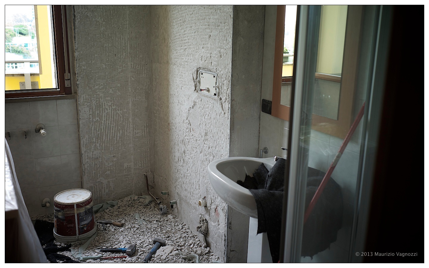 Sono apparsi stamani alle 7:15, comunicando con il loro forte accento bergamasco intercalato da raffiche di “pota” e “ko’diu”. Sono apparsi sulla soglia di casa per rimuovere i sanitari dal bagno e martellare via tutte le piastrelle che si erano sollevate per una posa non “fatta a regola d’arte”.