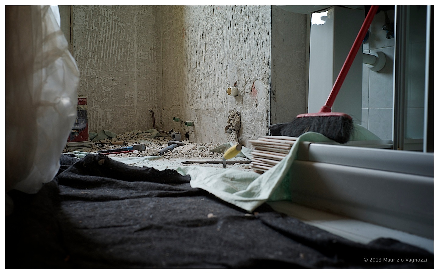 Il più mingherlino ha delle mani il doppio delle mie e una struttura al cui confronto io, definito “marlble” (marmo) dalle palestrose fanciulle del Pollaio&C., potrei essere considerato “gracile”. Mi son quasi stupito usassero martelletto, punteruolo e raschietto: pensavo bastassero i loro cazzotti e due ditate a far venire giù tutto. Portano in mano i pacchi di piastrelle nuove come io potrei trasportare un mazzo di carte da briscola.