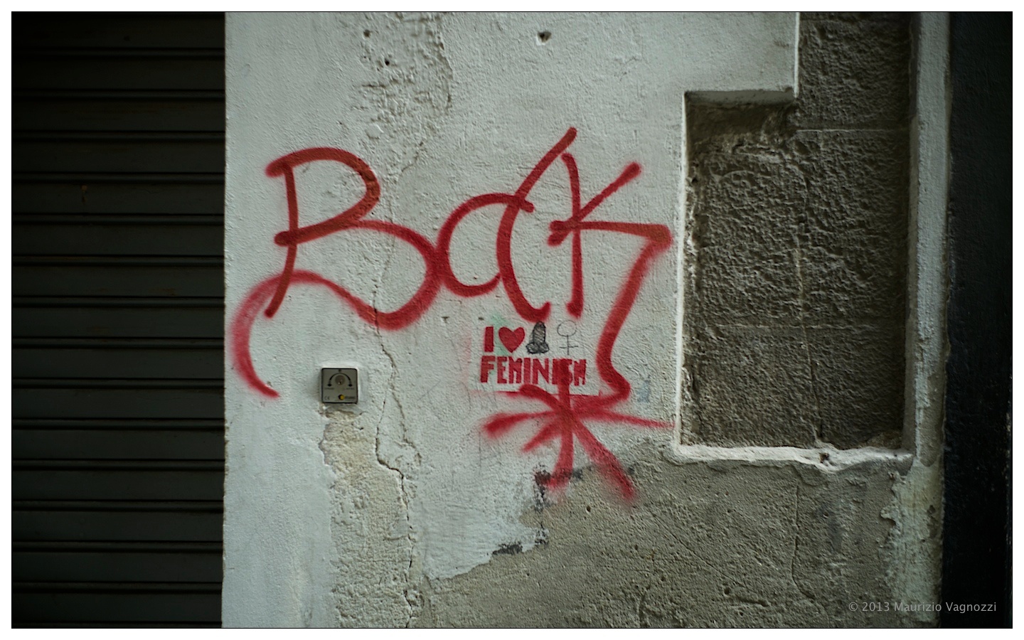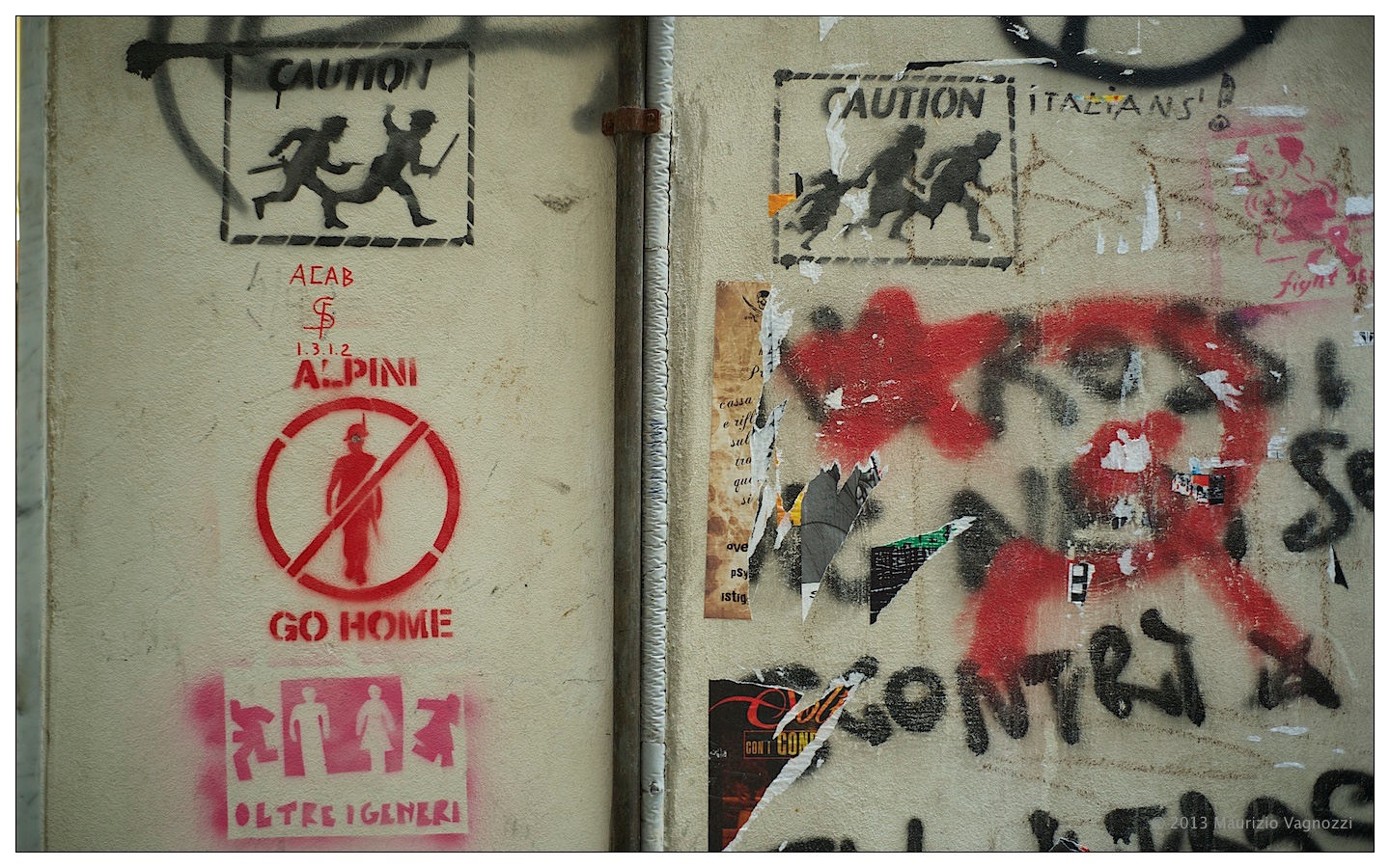 La scritta sul muro è qualcosa che appartiene ad altri tempi, ai momenti in cui era l’unico strumento diretto di comunicazione “qui lo dico”: oggi l’idea graffittara della firma, del “marchio di transito” mi vede veramente freddo e anche spesso un filo infastidito nel vedere più che “comunicare”, “imbrattare”.