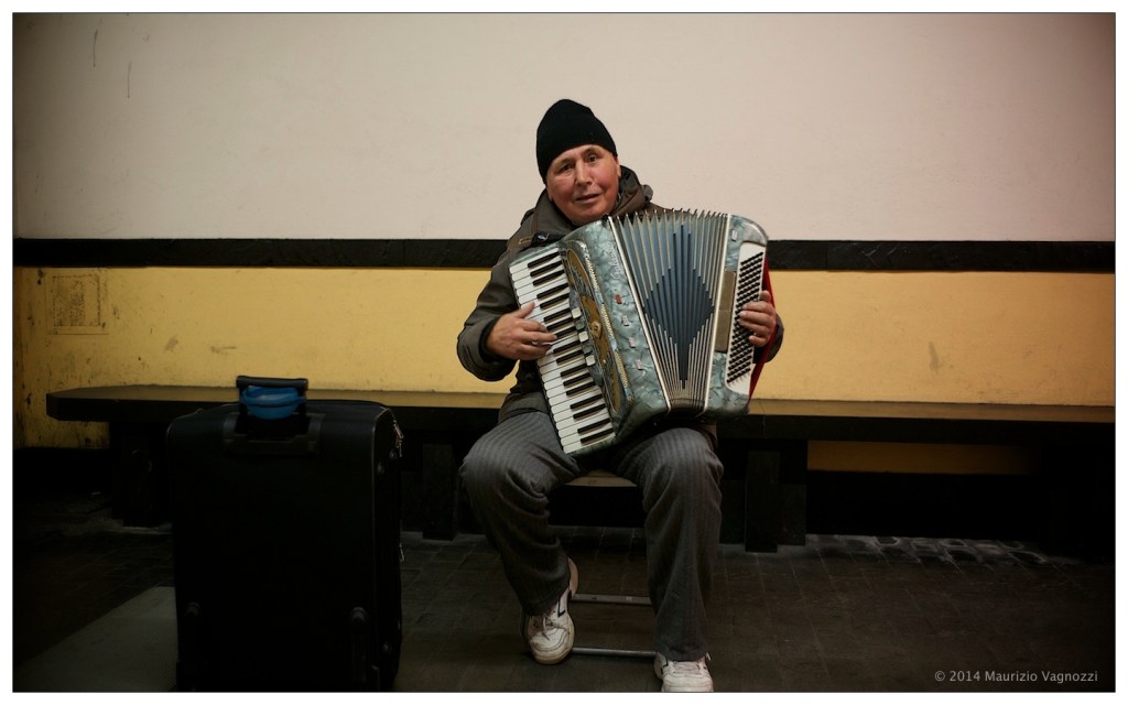 Foto? Mi piace chi suona per strada, mi sembra ci sia una dignità nell’offrire la propria musica per due spiccioli. Fisarmoniche, chitarre, sassofoni, fino al più classico degli “one-man band”: poi, trovare un tipo che allieta i passanti nella galleria dell’ascensore del Portello, con un berretto esattamente come il mio …..