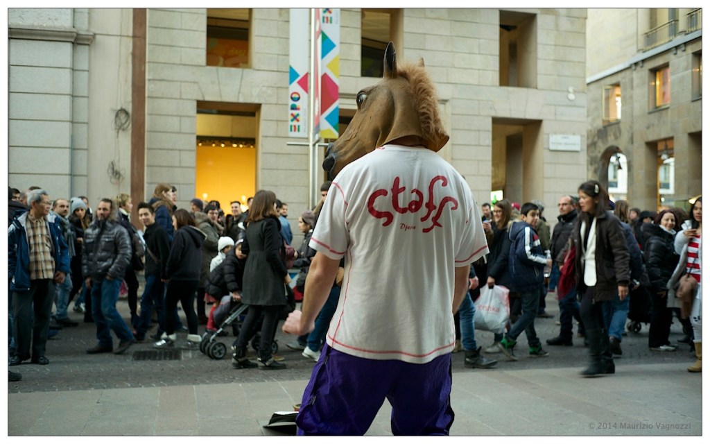 Foto? Navi e topi? Non se ne parla. In compenso il cazzeggio del sabato pomeriggio mi ha portato in centro a Milano per vedermi un bel film: ovvio avessi dietro la fida macchina fotografica per qualche scatto. Magari potrei scrivere la notizia di centauri-invertiti imbizzarriti che ballano in Corso Vittorio Emanuele …