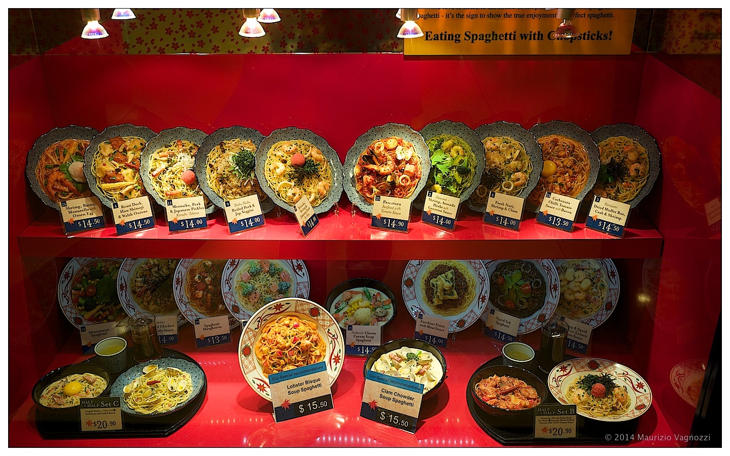 Dimenticando per un attimo sia la bellezza dei dettagli dei piatti esposti in cera (c’è un’arte incredibile nella capacità di realizzare riproduzioni così realistiche), sia anche il nostro italico innato autoctono senso della perfezione nella preparazione della pasta e degli spaghetti in particolare, vorrei tentare di stimolare una riflessione democratico-alimentare.