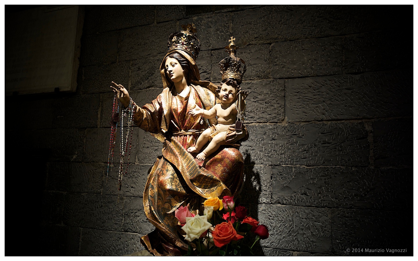 Roberto annuisce, mi invita a rimanere e a chiacchierare ancora: la Madonna lignea posizionata nella navata di sinistra mi ricorda tanto l’immagine che troneggiava all’ingresso dell’House of The Blues a Chigago, ma questo a Roberto non lo dico, mi limito a fotografarla, e sorridendo continuo a bruciare …