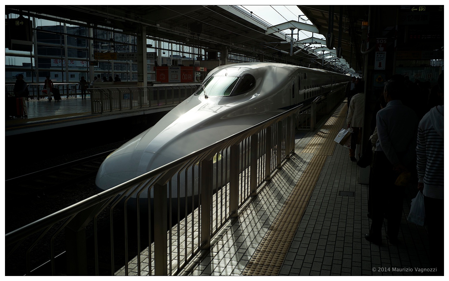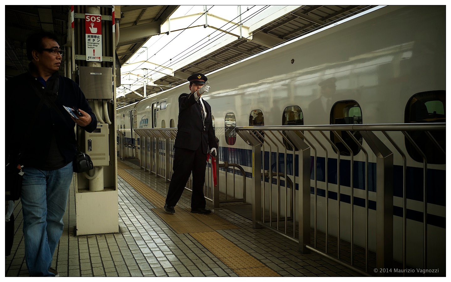 Bellissimo vedere il coordinamento del capo-binario che si occupa di dare la partenza al treno: gesti simili a quelli che sulle portaerei si usano per far decollare i caccia, e l’accelerazione in partenza è simile a quella che porta un aereo in decollo.