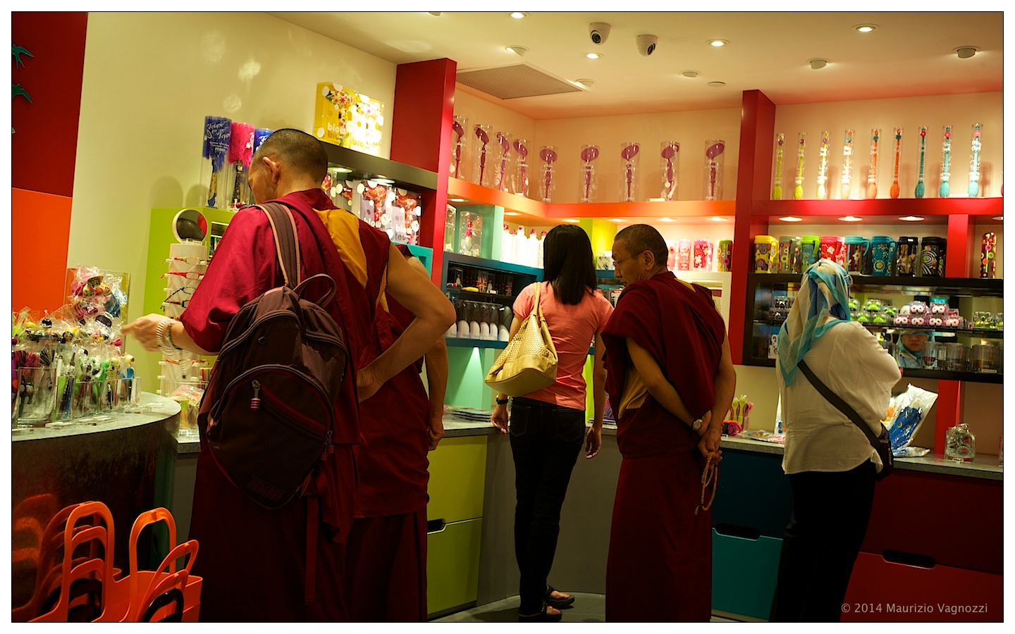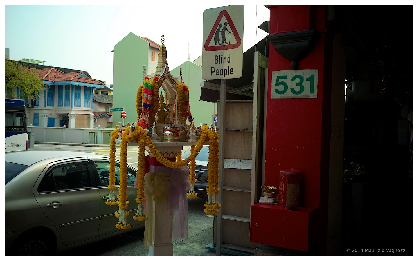 Ho rantolato in giro quasi tutto il giorno, riaffermando la tesi sull’approccio “hard” ai fusi orari e al jet-lag, cosรฌ domattina, quando prendo un fantastico volo verso nord, alle 6 con sveglia alle 4am, sarรฒ solo “normalmente” stordito e non “apocalissamente” stordito. Ho fatto qualche scatto a Geylang, dove sono andato per vedereย un tempio che, cazzo, mi hanno sostituito con un condominio in un fiat (vedi “Geylang Scompare“), e un un altro paio a un grappolo di monaci interessati al design francese in vendita sulla Orchar Rd. ….