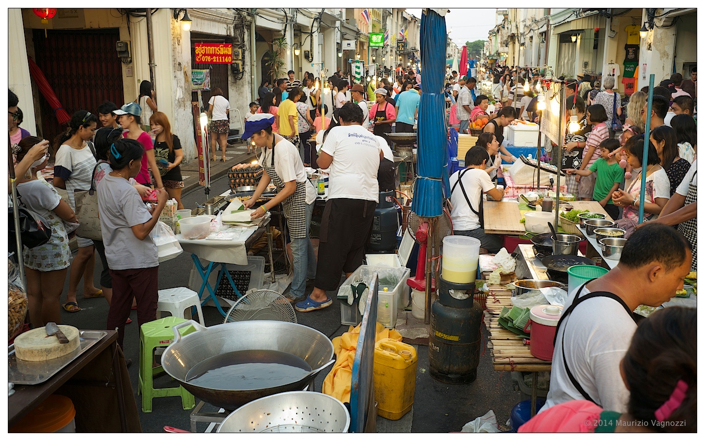 Thalang Road, nella Old Town, diventa completamente pedonale durante tutte le domeniche, trasformandosi in un ristorante, in un mercato, in un luogo di performances artistiche: è bellissimo percorrerla avanti e indietro all’imbrunire, curiosando e spizzicando il cibo squisito che viene preparato e offerto al momento, mescolando decine di diverse tradizioni culinarie.