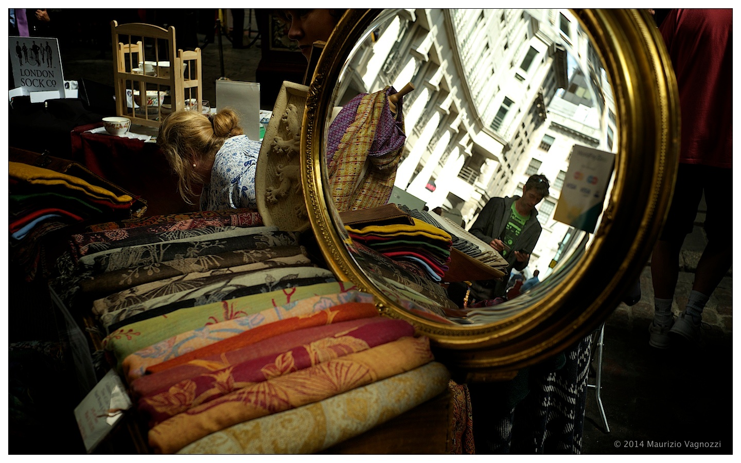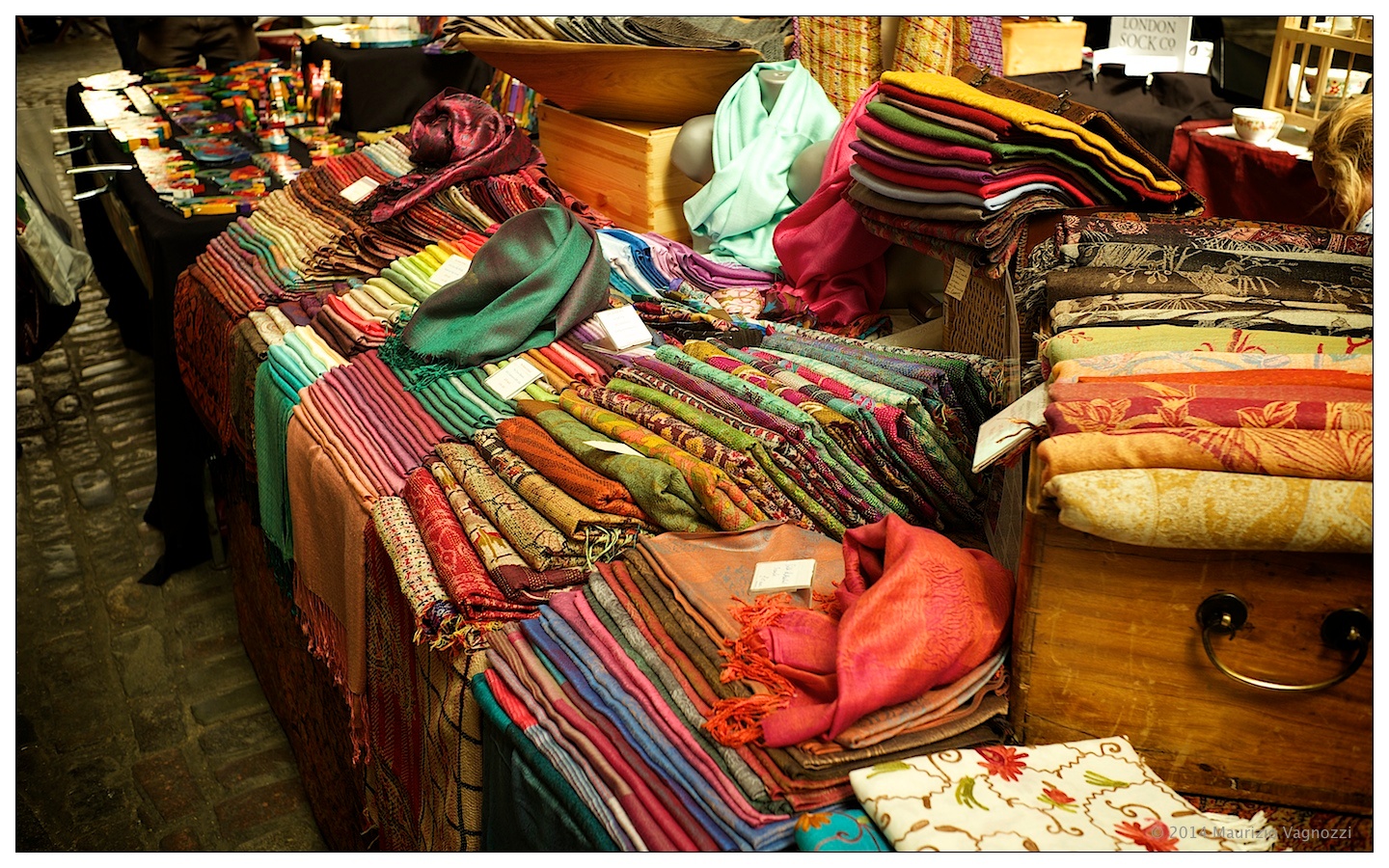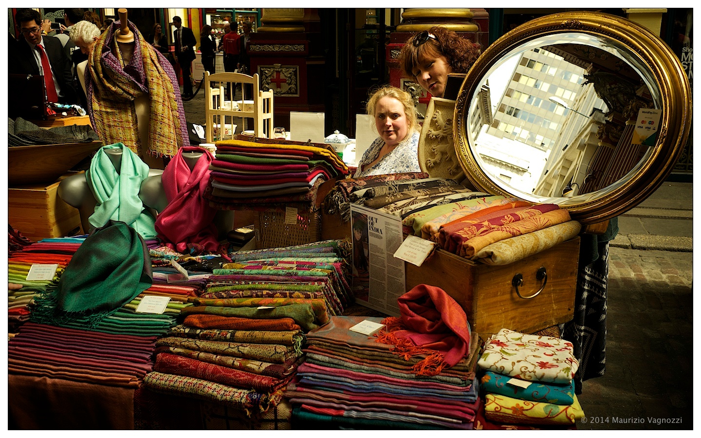 “Belle queste sciarpe, belle e si vede che arrivano dal subcontinente indiano e dall’Indocina“: sono sempre un inguaribile chiacchierone e, mentre faccio due passi dopo aver pranzato dentro il Leandenhall Market, non posso far a meno di fermarmi e curiosare tra le poche bancarelle che espongono originalità e passione.