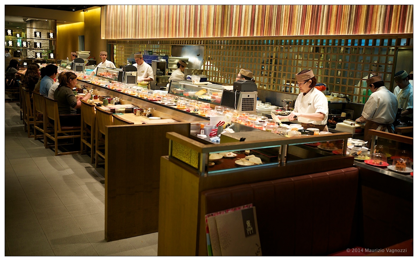 Sono andato da Sushi Tei, al quinto piano di Paragon, che offre accanto al classico una cucina jap-fusion divertente e gustosa: encomio solenne per un carpaccio di salmone e capesante con una salsina agrodolce, uova di salmone e cipolle tagliate finissime che mi ha fatto raggiungere vette prossime all’orgasmo culinario.
