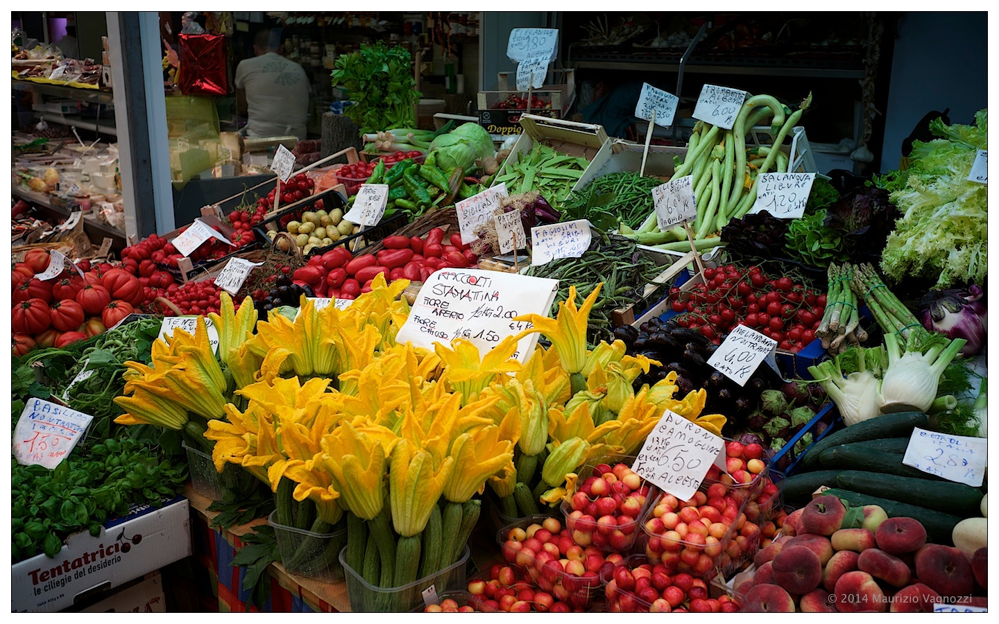 Buongiorno! Buon caffè. Bello il mercato e le foto. Quelle zucchne in primo piano sono una meraviglia. Il mercante mi sembra invece un po’ rattristato…