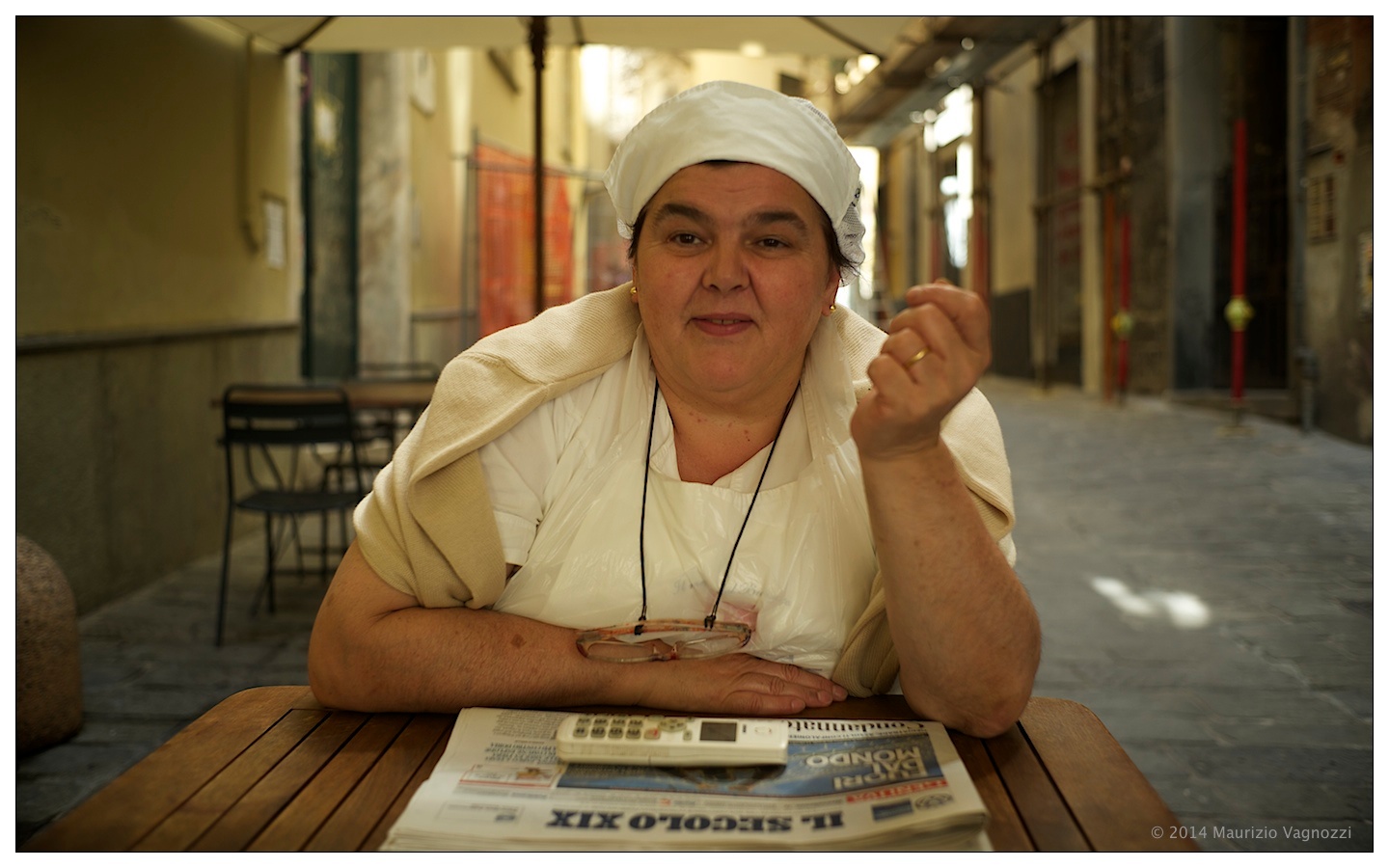 “Dai, siediti, mica ti faccio pagare per fare due chiacchiere“. L’ironia di Marina è sempre genuinamente ligure, mentre la vedo leggersi il giornale prima che i clienti comincino a movimentare la sua cucina.