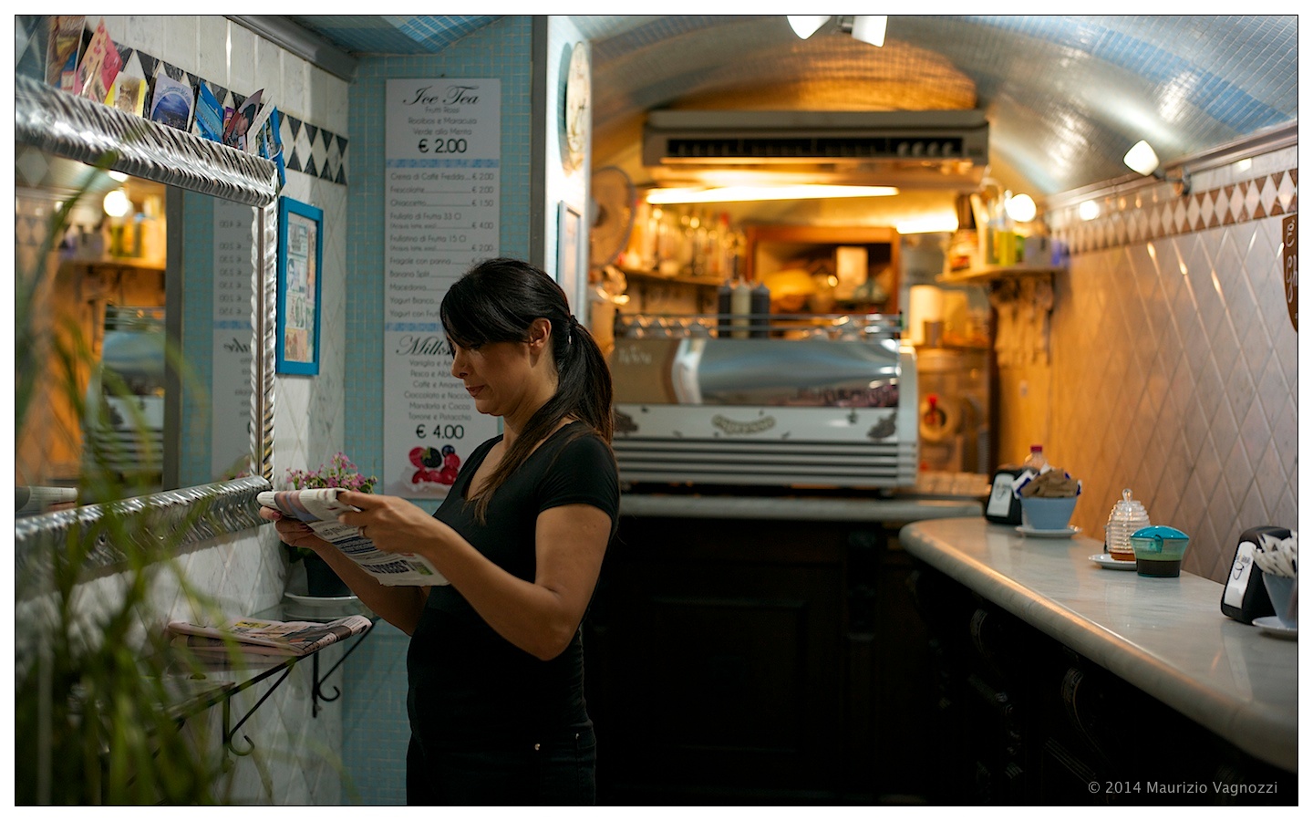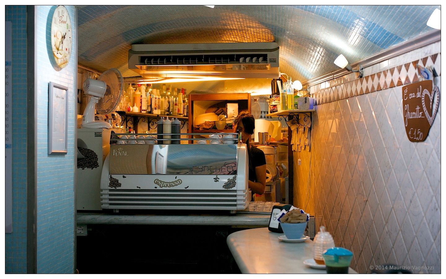 Risalgo dal Porto Antico con Beria che si ferma a farsi coccolare in Via Banchi, subito dopo la Loggia dei Mercanti: “Che bello sei!” le dice una delle due ragazze che gestiscono una mini-caffetteria con un oltre secolo di storia.