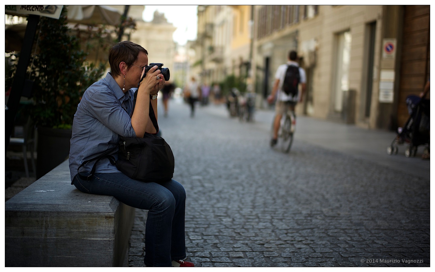 Lei, sua mamma e suo nonno stavano giocando al calcio-balilla (non riesco a chiamarlo biliardino): ho chiesto loro il permesso di fare una foto e ho scattato “a mano” intuendo l’inquadratura tenendo la macchina per terra con una focale 35mm f5.6, 1/250, fuoco impostato sui 2 metri … 2 scatti, entrambi buoni 🙂