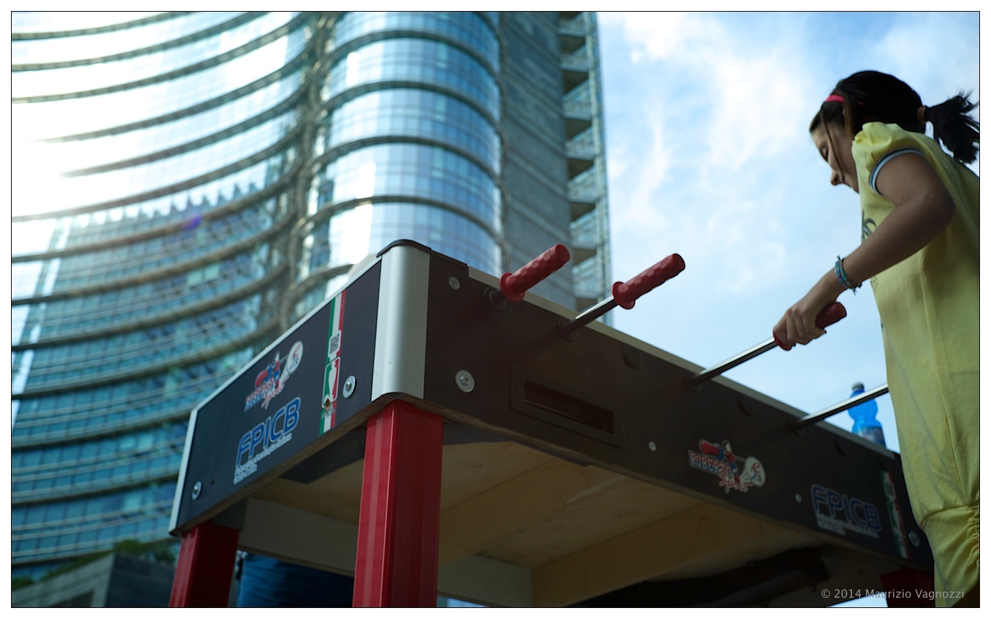 A parte unirmi al coro dei tuoi sostenitori, con i complimenti, ti devo chiedere come hai fatto la seconda foto, quella con la bambina che gioca a calcio balilla.