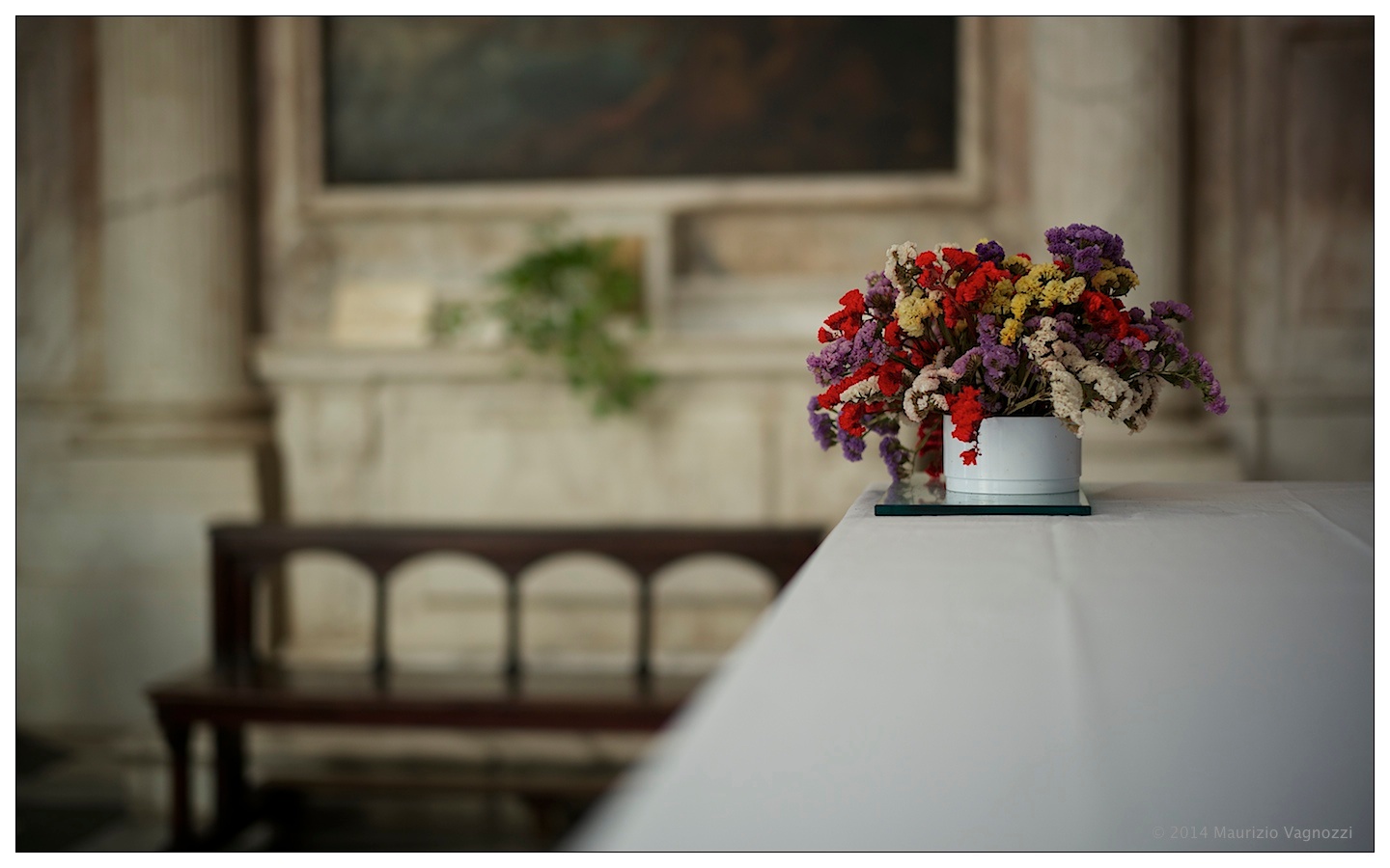 Amore sacro quello di San Pietro in Banchi dove ho scattato l’immagine dei fiori sull’altare, amore profano in Via dei Macelli di Soziglia, dove ho mosso e sfuocato le ragazze che stanno lavorando, amore della madre china sulla carrozzina delย figlio in Via del Campo mentre stavo bevendo un caffรจ,ย ย A Love Supreme …