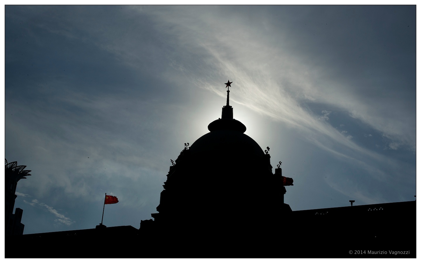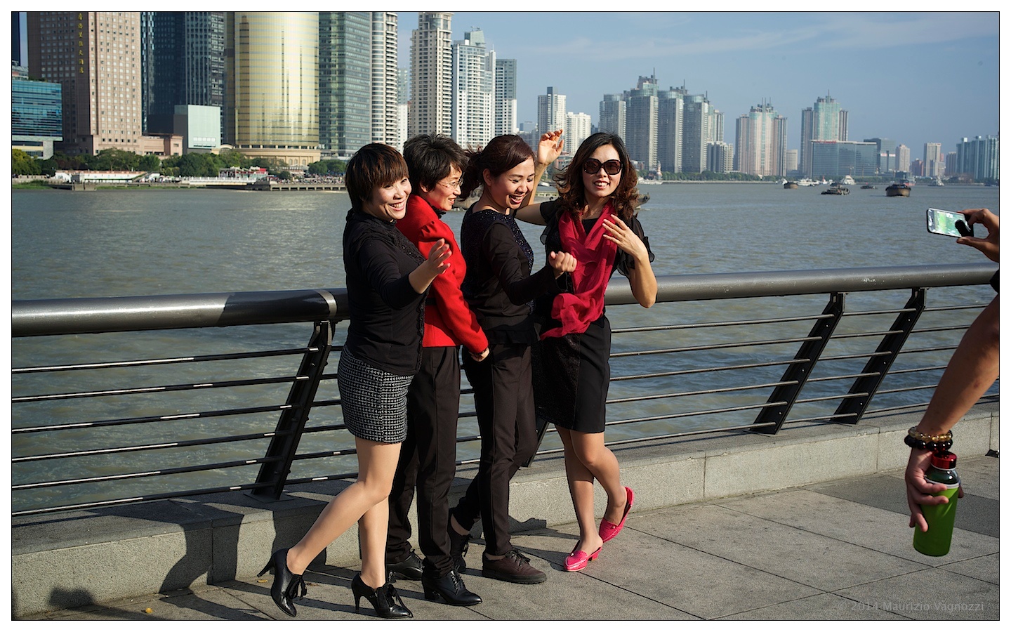 È impossibile in una domenica di sole a Shanghai non camminare sul Bund, il lungofiume che fa da corniche ai vecchi palazzi delle istituzioni finanziarie prima della Lunga Marcia da un lato e i grattacieli avveniristici con la Torre simboli della cittΓ  dall’altro.