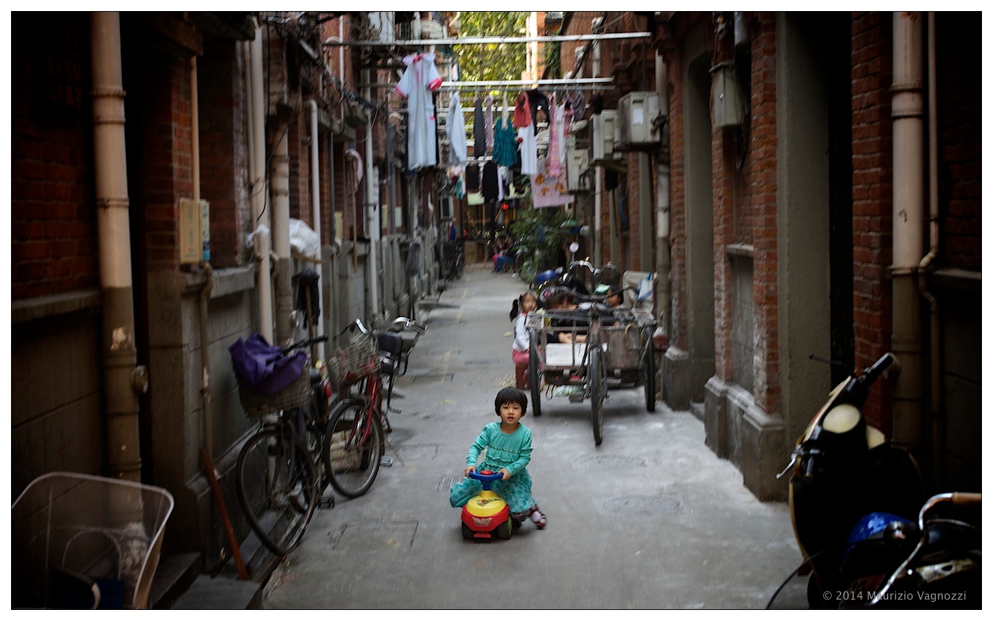Non so come tradurre “longtang“: la parola non indica solo una viuzza, un carruggio praticamente, ma l’intera comunitร che ci abita, la molecolaย sociale che crea una dimensione dopo individuo eย nucleo familiare. Chiamato spesso anche nella litterazione “lilong” (้ๅผ), le case che si affacciano sulle alleys hanno dato vita a uno stile architettonico specifico.