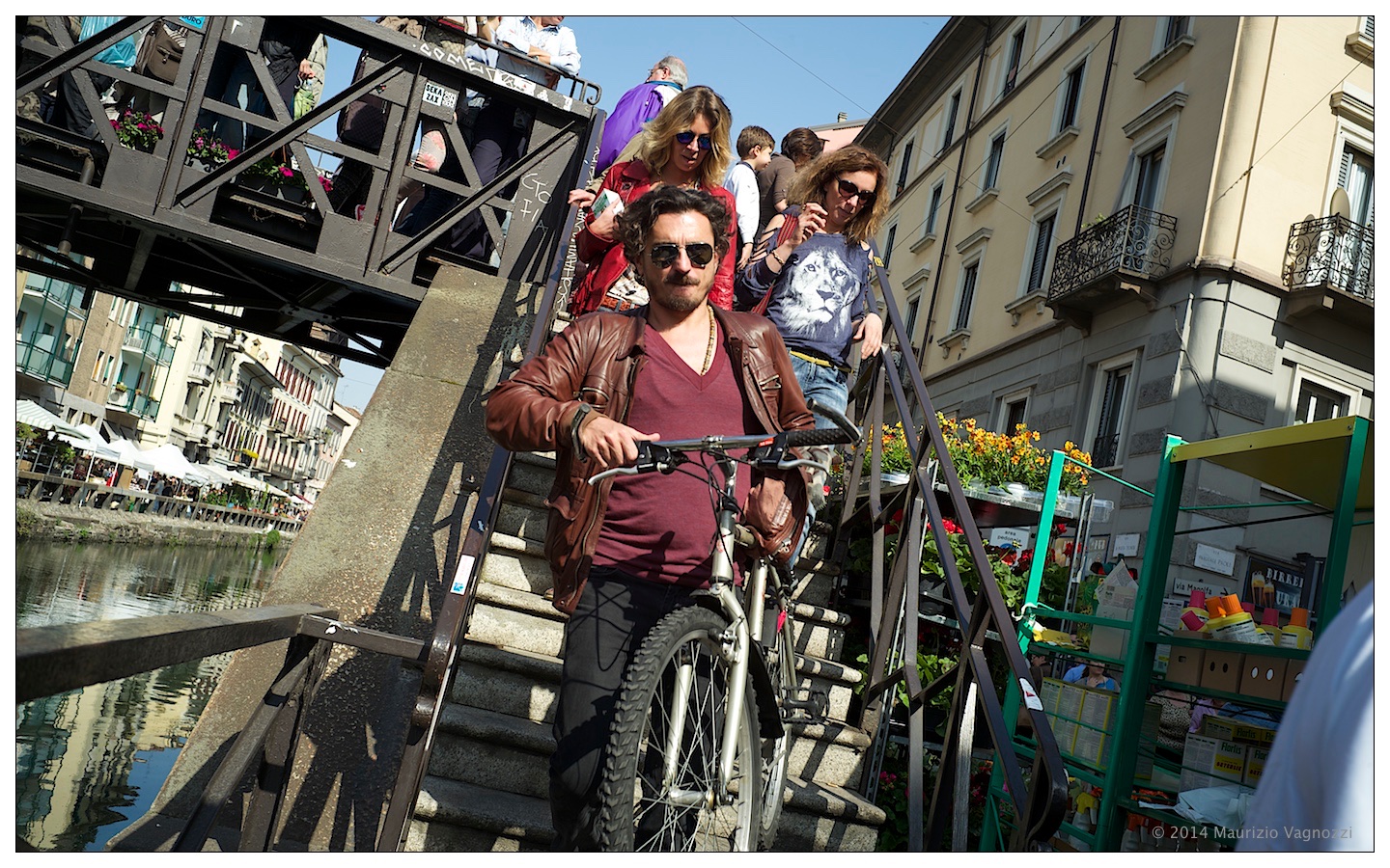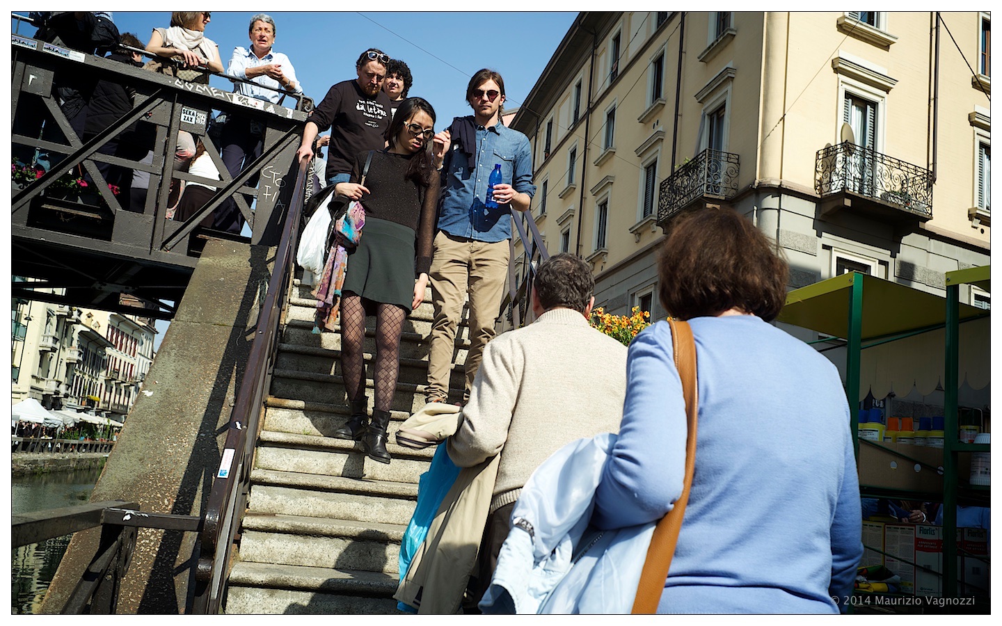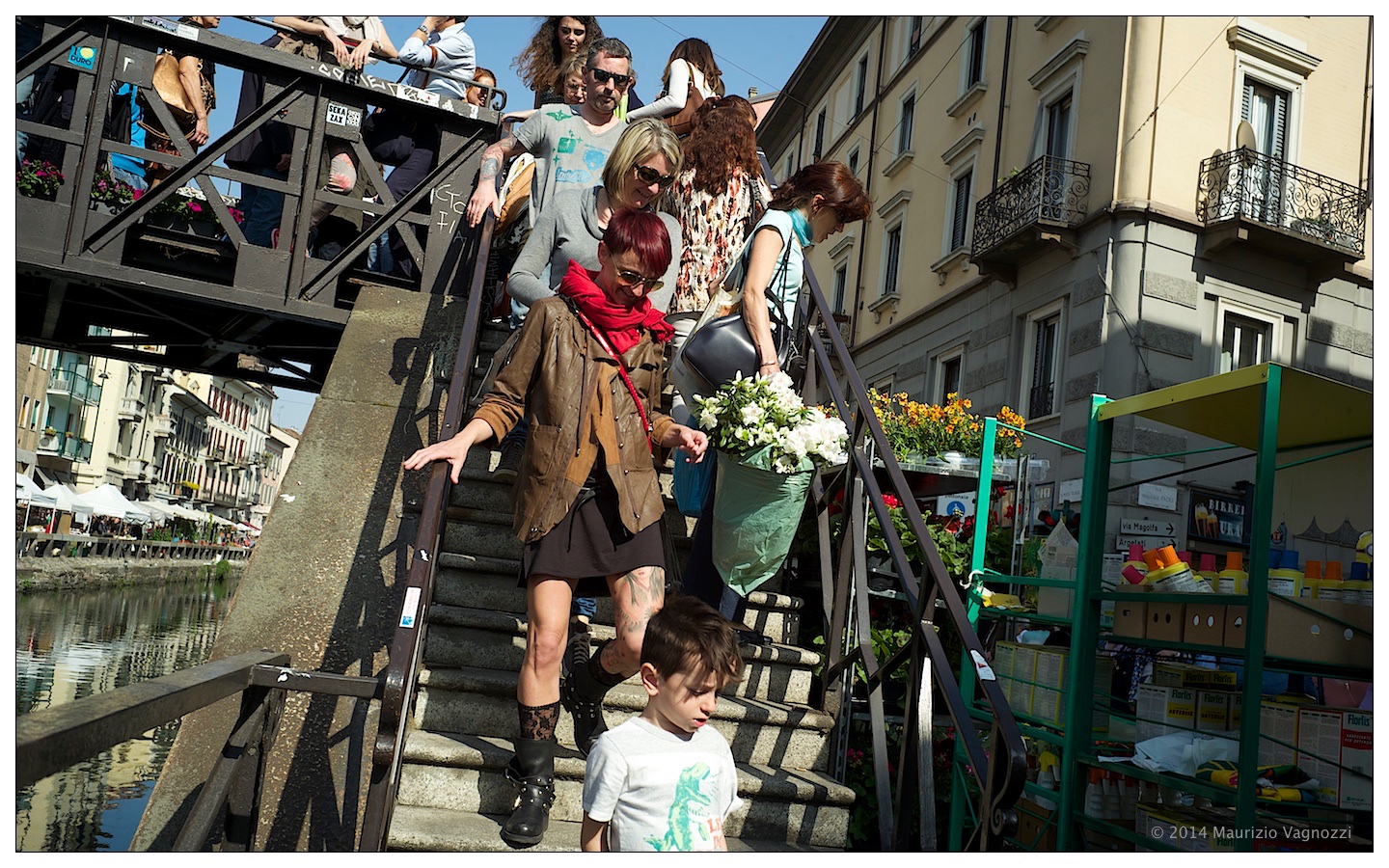 Scale, e tutti che le scendono, in una domenica di sole sul Naviglio, qualche mese fa …