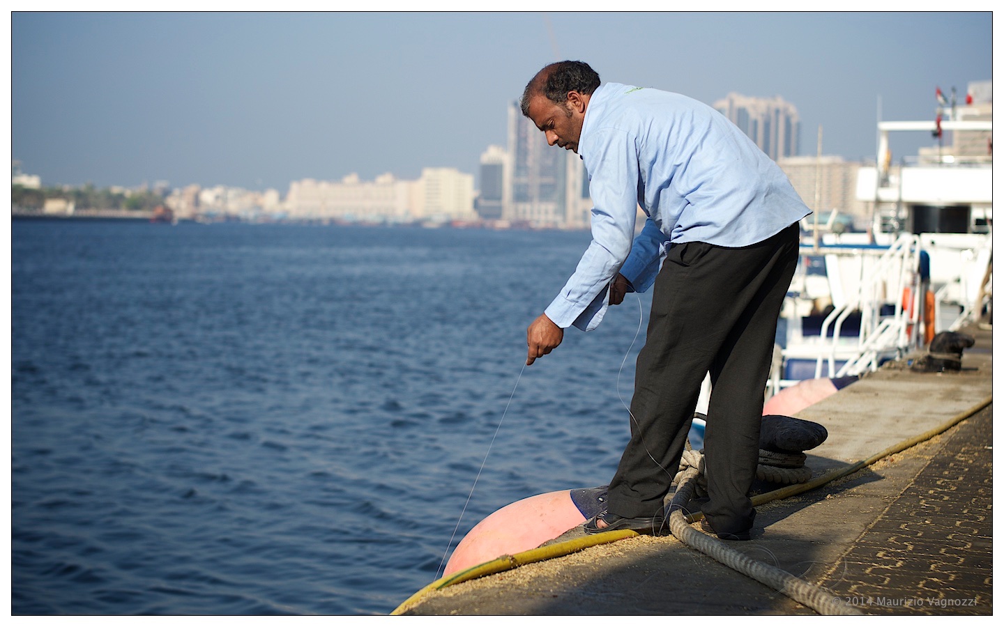 Foto? Un pescatore al bolentino lungo il Creek, fotografato Venerdì, e poi un gustoso documento d’archivio: era l’estate del 2004 e con il caldo troio che superava i 50°c ho raccattato la Camillina e l’ho portata a vedere la Musandam Peninsula, a salire sulla Stairway To Heaven, la montagna dalla quale puoi vedere l’Iran e a guardare le capre brucare la foresta di acacie che è l’unico vegetale che riesci a trovare in questa fornace, inferno di calore sulla terra ….