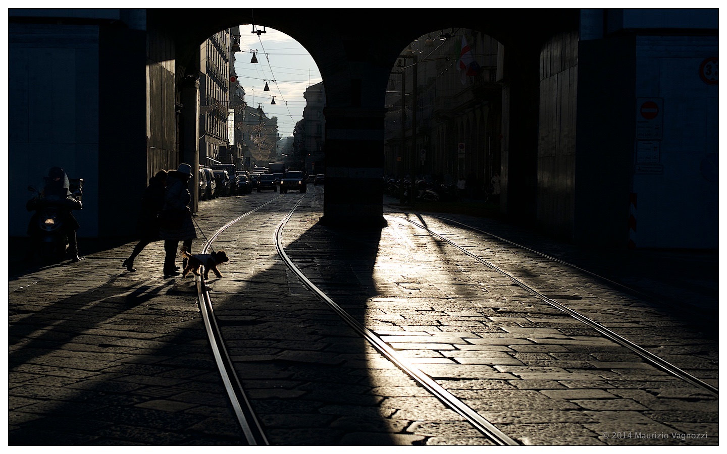 Metti un pomeriggio di fine anno, metti che sia in Piazza Cavour, a Milano. Metti che stia attraversando la strada e metti che mi piaccia l’effetto in controluce che vedo disegnato dagli archi che fanno terminare Via Manzoni (e questa porta si chiamerà poi in qualche modo).