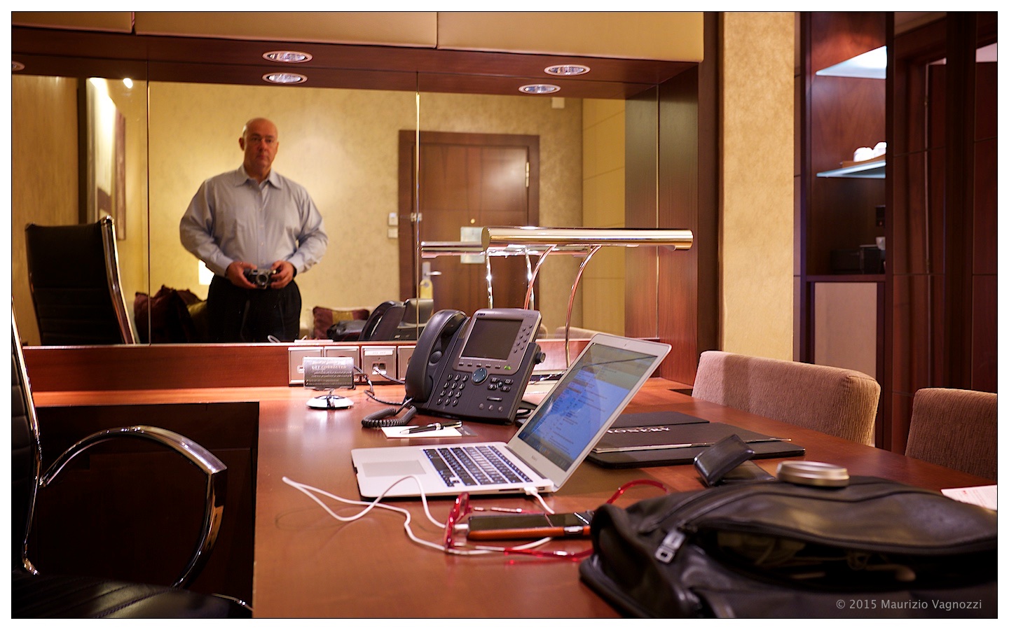 Foto? Mi si chiedeva dei selfie riflessi che per un paio di post hanno dominato l’immagine del giorno: ecco stamani, ancora in camera ad Al Khobar, ridente cittadina che galleggia sul petrolio …
