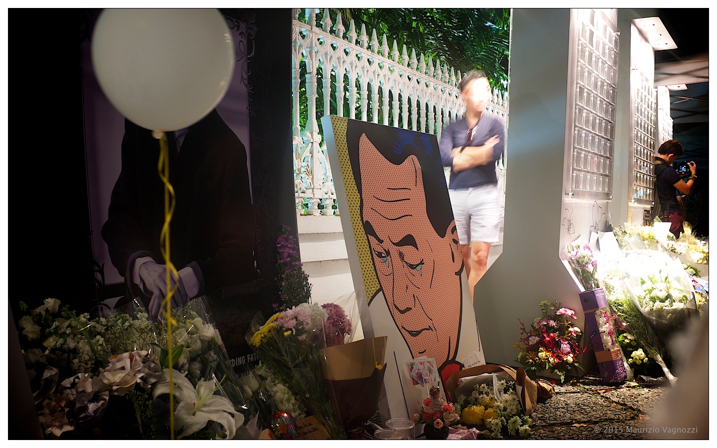 La gente per strada si Γ¨ voltata verso gli schermi che prima inquadravano una bara coperta dalla bandiera bianca e rossa, poi immagini in bianco e nero di Lee Kuan Yew, primo ministro dal 1959 al 1990 quando volontariamente si dimise per assicurare un ricambio generazionale.