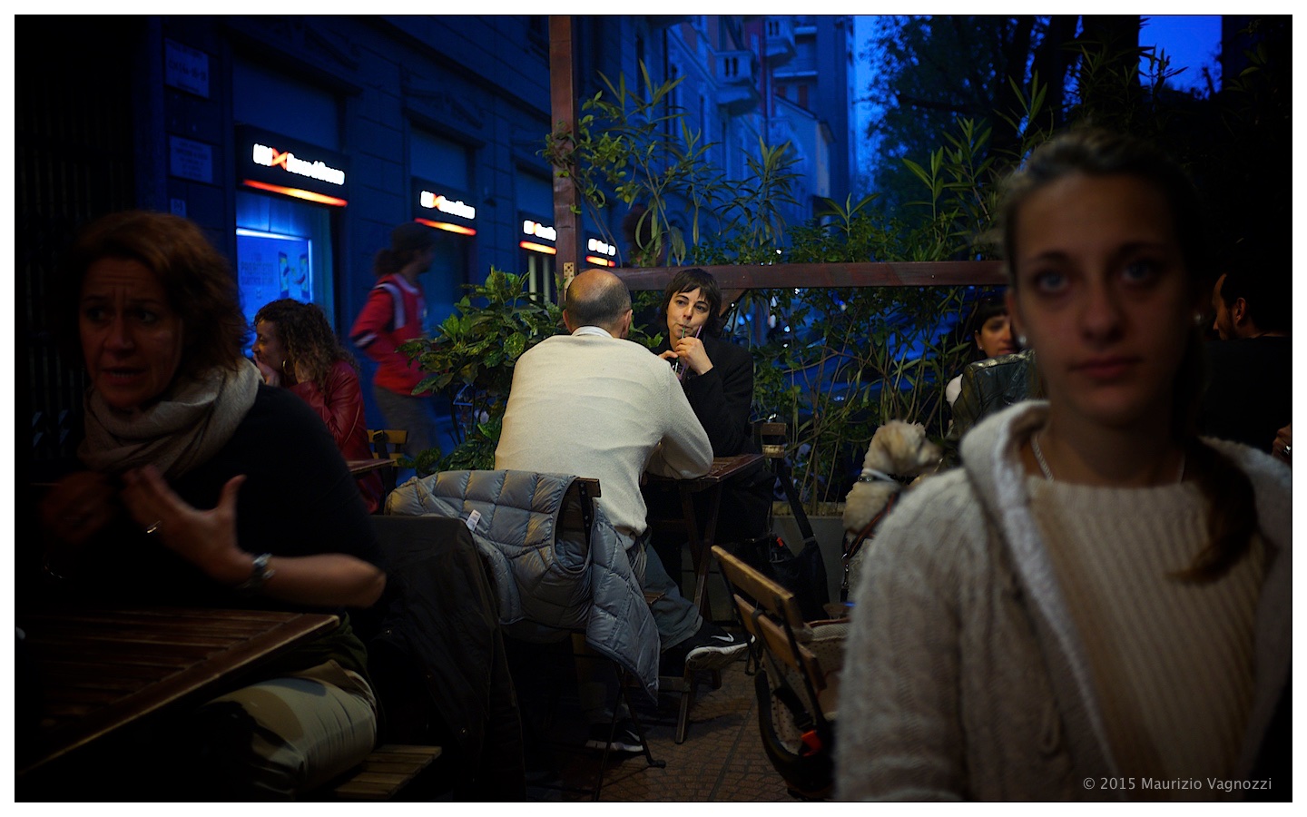 Ci siamo seduti sulla veranda fuori, mentre il traffico su via Lomellina andava scemando e le parole delle discussioni, dei ricordi, delle confessioni e dei pettegolezzi dei tavoli accanto si mescolavano con l’odore del vino e il profumo dell’amicizia.