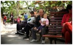 C’è chi cura i nipoti e ti sorride orgoglioso mostrandoteli quando chiedi loro il permesso di fotografarli. C’è chi insegna a un merlo a parlare e riceve sussurri diffusi si approvazione quando il volatile gli risponde. C’è che ti fotografa mentre lo fotografi e si decide di mandarsi reciprocamente lo scatto, con divertimento. C’è un tipo italiano grosso e pelato che si aggira in braghe corte e con una macchina fotografica in mano.