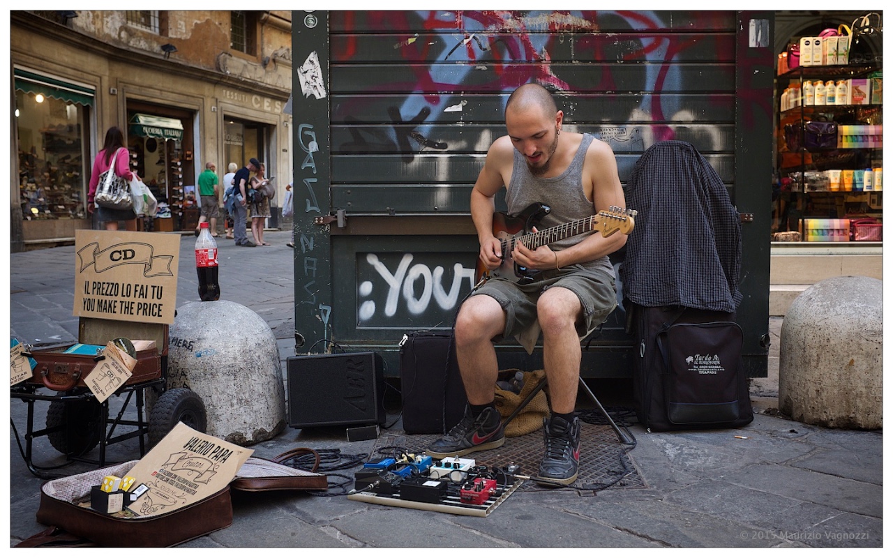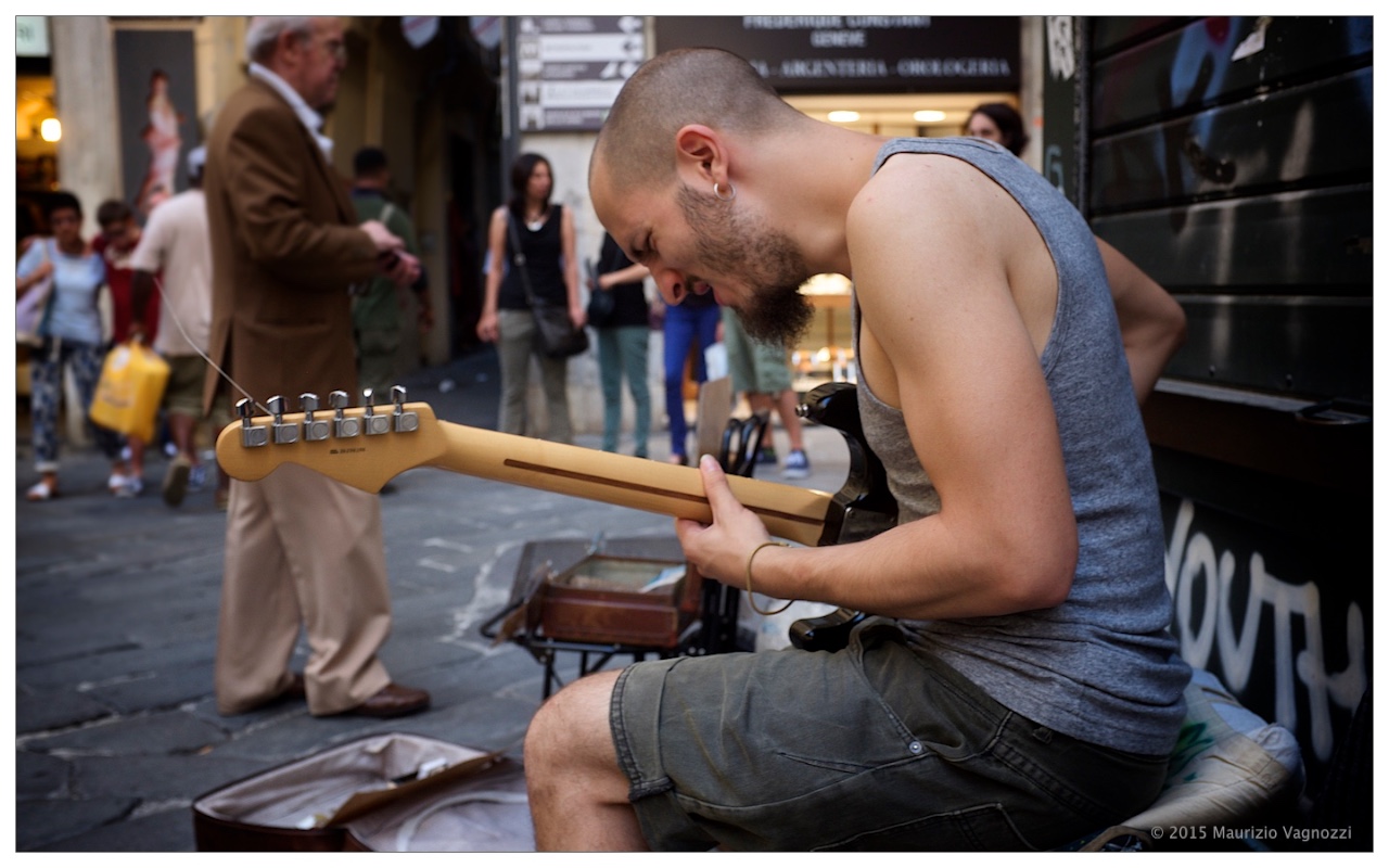 Quando chiude l’ode ai Led Zeppelin comincia a far partire una base chiesta con entusiasmo da un tipo che in caso di trasfusione potrebbe essere classificato come “distilleria” e dover pagare l’UTIF (la licenza fiscale sugli alcolici): è il tributo alla follia di Syd Barrett che Waters, Wright e Gilmour hanno composto nel 1975. Le note riempiono i vicoli, incastrandosi tra le pietre medioevali, facendo confondere anche le linee bicolori del Gotico genovese e fermano il tempo andando a cercare le menti di commercianti e prostitute, di turisti e di anziani alla spesa, di chi si sta bevendo una birra e chi ordina un più morigerato cappuccino.
