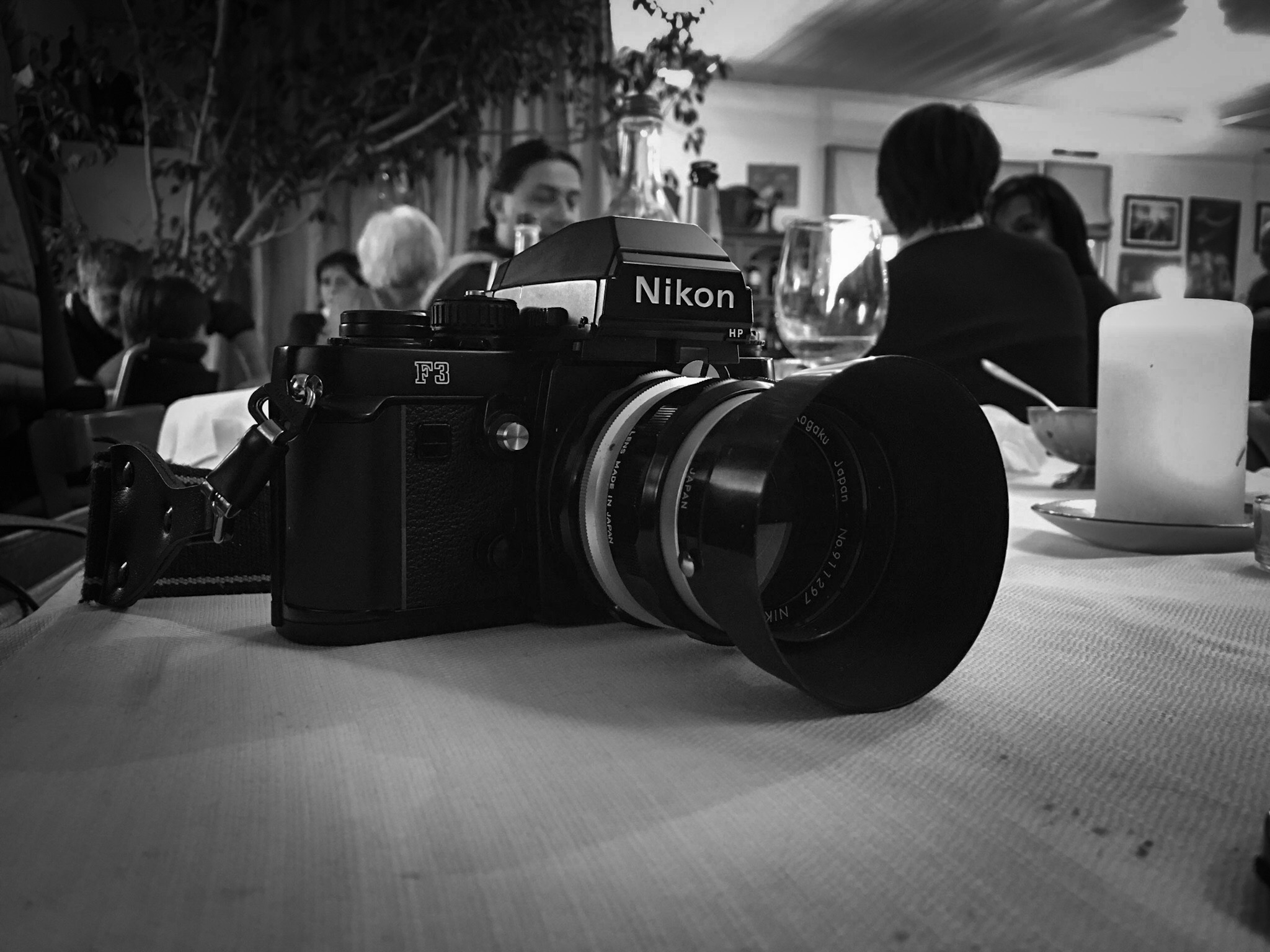 Ho dato un occhio a cosa avevo ancora in cantina tra tank, spirali, bottiglie, termometro e misurini: ho miracolosamente trovato ancora del D-76 non scaduto (l’ultimo rullino l’avrò sviluppato due anni fa), e ho impacchettato il tutto per portarmi le “capabilities” giù ad Abu Dhabi. Poi ho rivisto la “dotazione” di macchine e lenti da associarci: quasi un imbarazzo nella scelta. Accanto alla Signora Tedesca M7 che uso abbastanza spesso, mi è tornata in mano una Nikon F3 HP che ho acquistato qualche anno fa, ancora completamente nuova e sigillata per un centinaio di Euro: pensare che una volta era un sogno economicamente inarrivabile.
