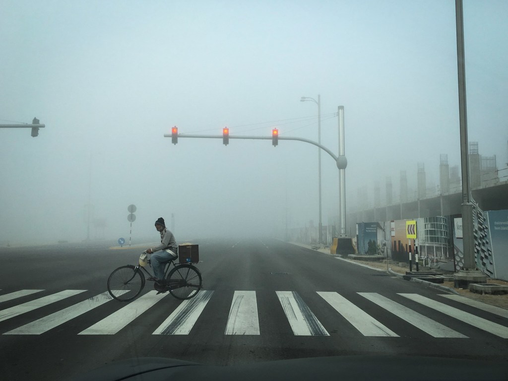 L’anima (che stavo spingendo) ha tirato una frenata e ha acceso antinebbia e faro posteriore appena sono uscito all’aperto: un nebbione “lodigiano-lomellino” mi nascondeva la vista di qualsiasi cosa e il bagnino che stava battendo i denti mi ha detto “Boss, you are crazy!“.