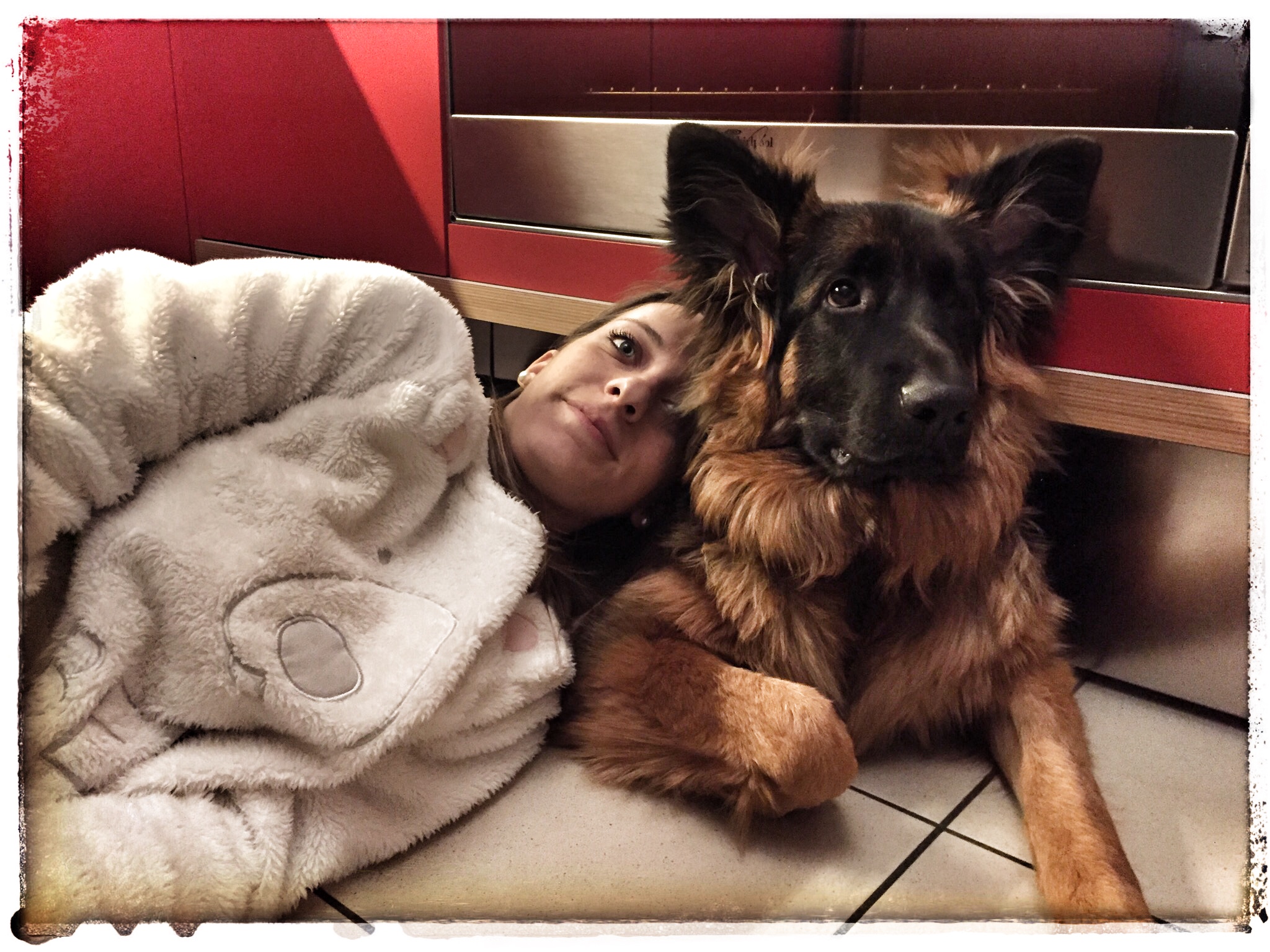 Mentre in casa è impossibile distrarsi anche solo per un secondo che la si trova a morsicare e rodere qualsiasi cosa, dai giornali ai cuscini, dalle porte agli angoli del muro, dalla biancheria nel cestello ai libri, fuori ha un comportamento estremamente sociale con umani e canidi ma, cazzo, è un’aspirapolvere scodinzolante.