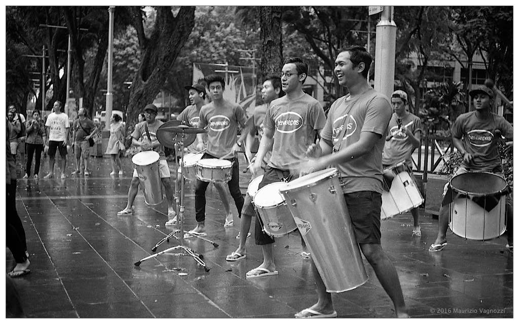 Foto? Un vecchio che fa girare le palle e un grappolo di ragazzi sponsorizzati da produttori di ciabatte infradito che percuotono tamburi …